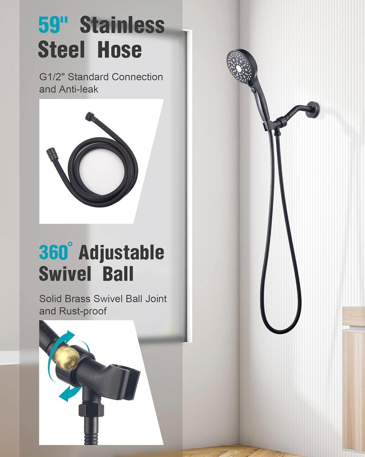 Shower Head-12 Functions High Pressure Handheld Showerheads with Button for Pets Dog Bath, SR RUN RISE Removable Water Saver Hand Shower Wand with 59″ Shower Hose (Oil Rubbed Bronze)
