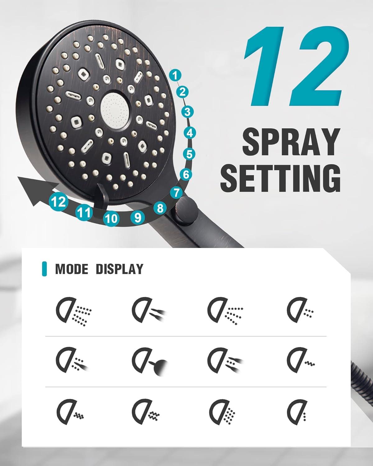 Shower Head-12 Functions High Pressure Handheld Showerheads with Button for Pets Dog Bath, SR RUN RISE Removable Water Saver Hand Shower Wand with 59" Shower Hose (Oil Rubbed Bronze)