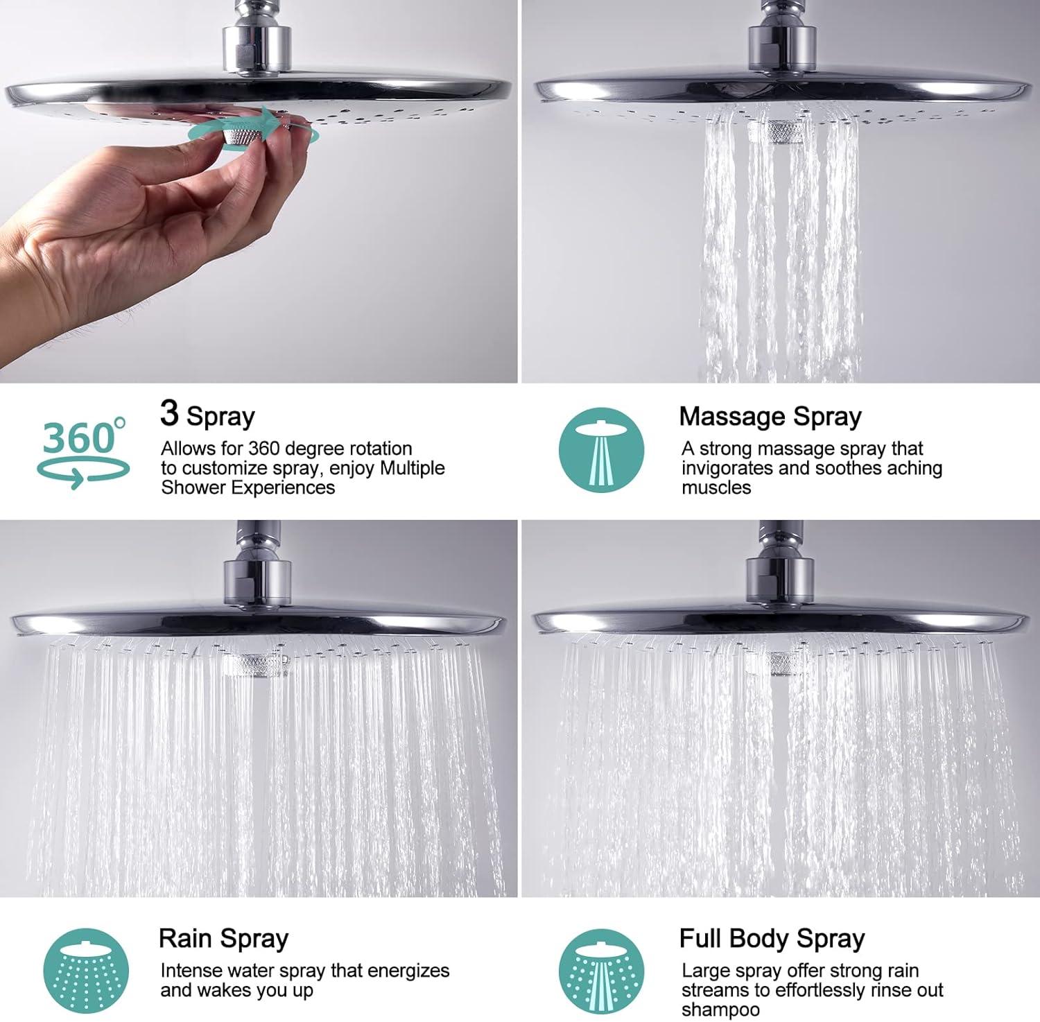 3 Spray Rain Shower Head: 3 spray functions transform your shower into a luxurious spa. A great way to relax and simulates the natural raining to provide you with natural contact of water experience.