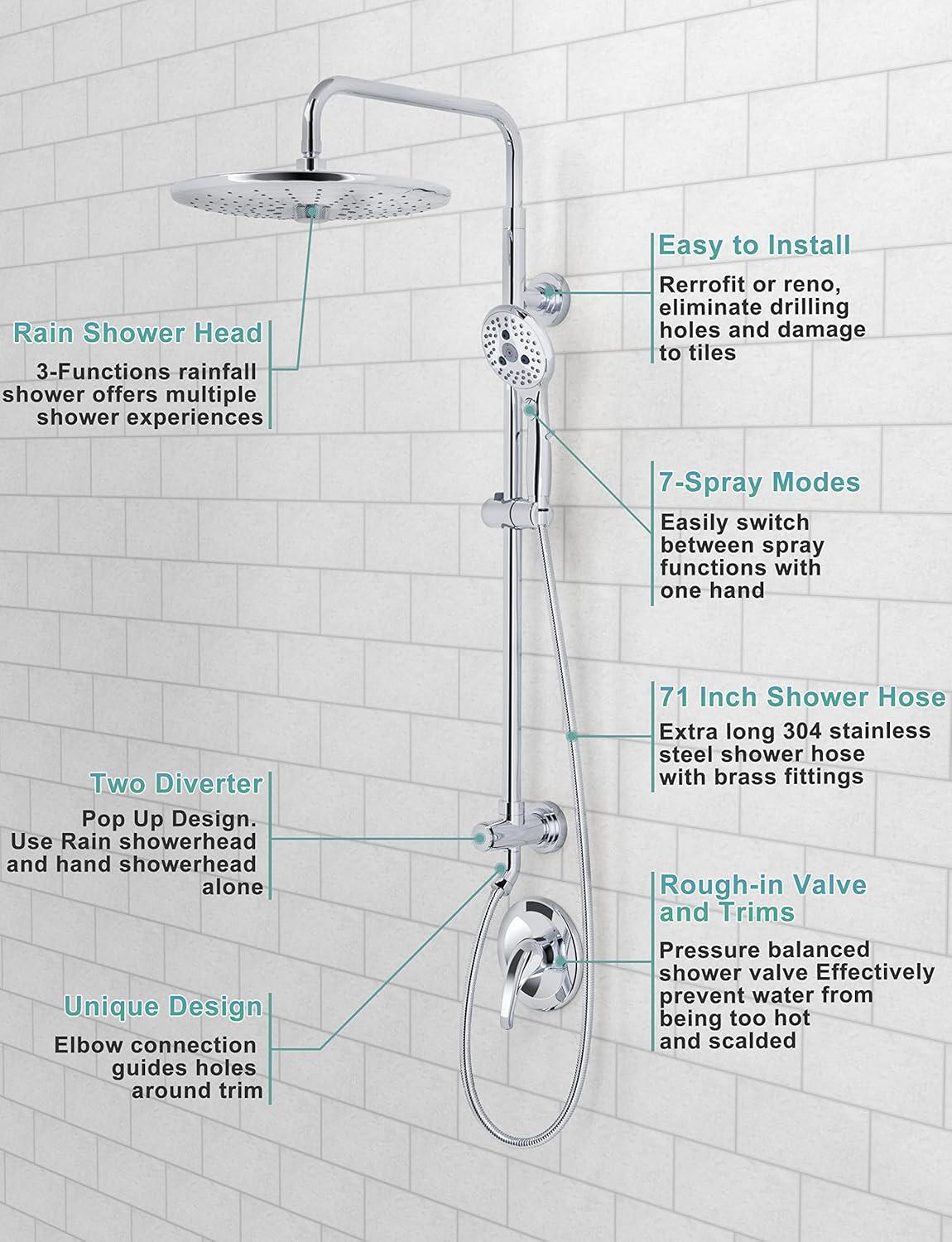 cUPC Certified Shower System: Indulge in the drenching spray of the 3-sprsy rain showerhead and the 7-function hand shower, either one works or the other, easily switching between both with the push-button diverter.