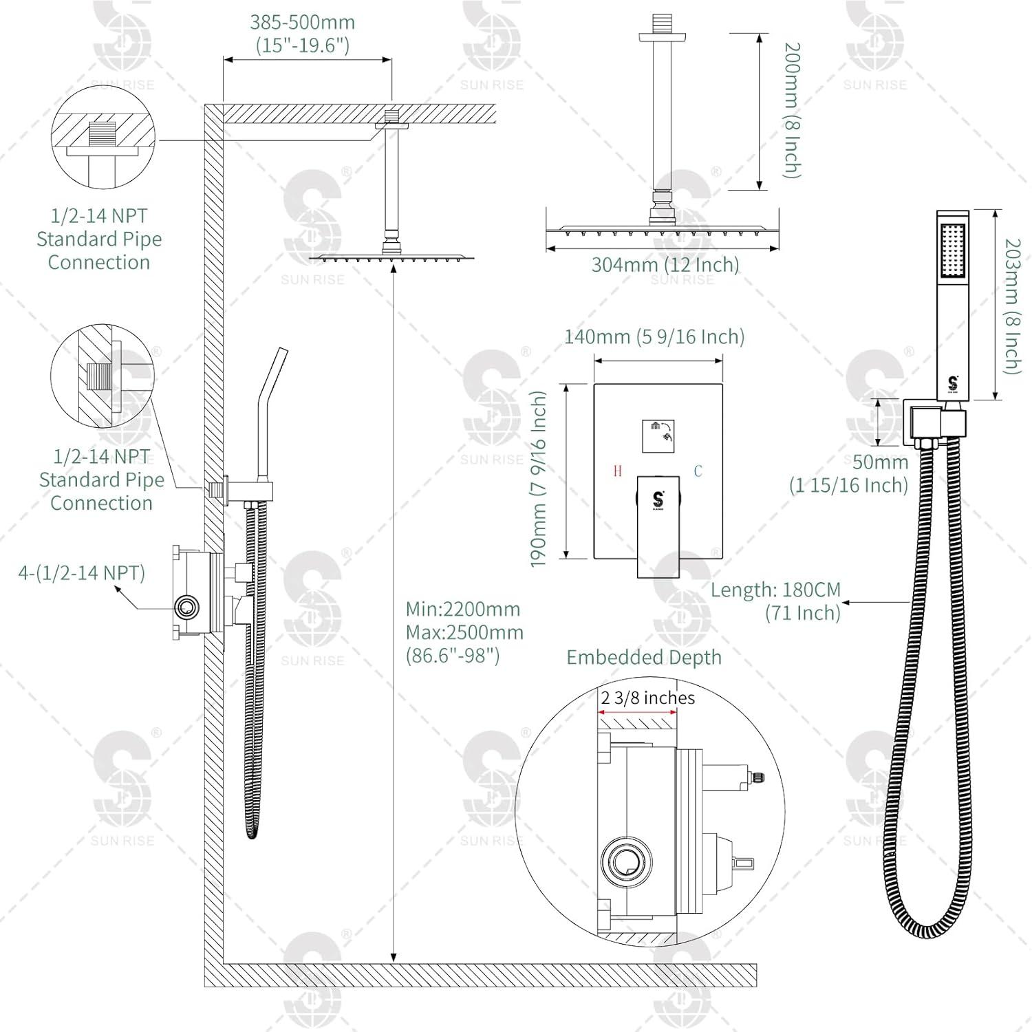 Be the first to review “SR SUN RISE 12 Inch Ceiling Mount Matte Black Shower System Bathroom Luxury Rain Mixer Shower Faucet Set Ceiling Rainfall Shower Head System Faucet Trim Repair Kits Rough-in Valve and Trim Included(Brushed Gold)”