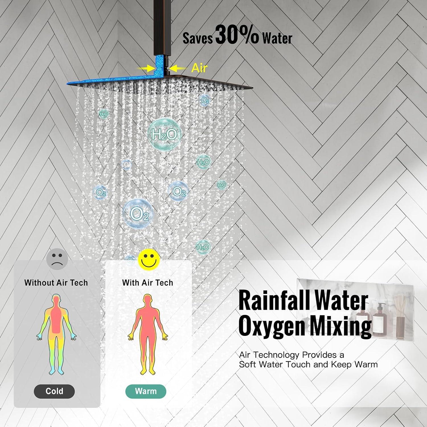 Ultimate High Pressure Shower: Thanks to the ultra-thin design of the rain shower, even in a low water pressure environment, when the water flows out after being squeezed through the ultra-small space, it can also achieve a high water pressure rain shower experience.
