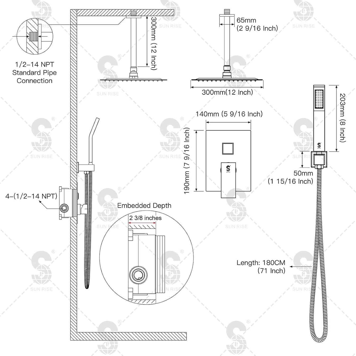 Install with Confidence: SR SUN RISE Shower System has cUPC Certification and compliance with the following standard(s): ASME A112.18.1-2018/CSA B125.1-18. Designed for use with standard 1/2″ U.S. plumbing connections. Approved by the California Energy Commission.