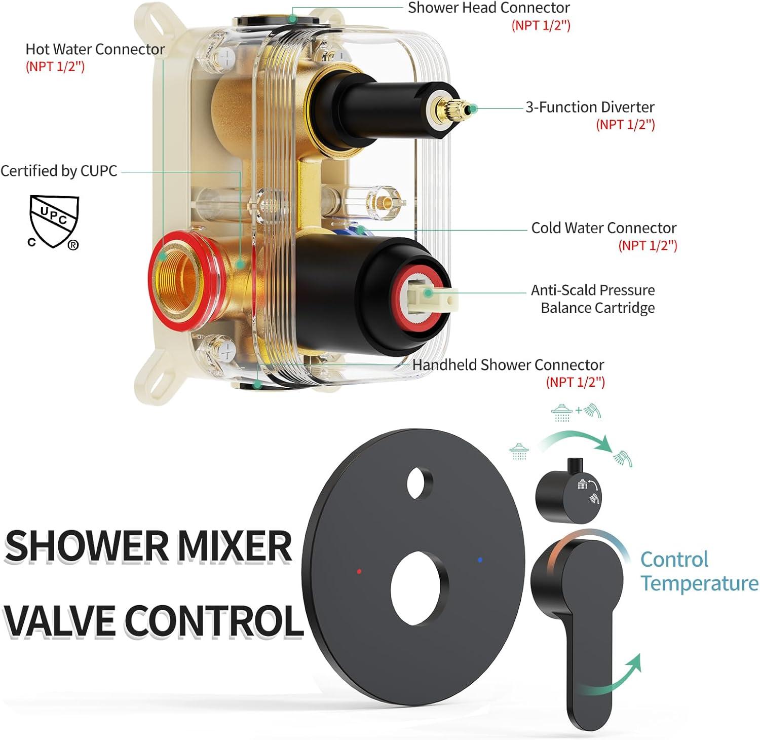 Prevent Water Hammer: This pressure balance valve has built-in Shut Off Stops to effectively prevent water hammer noise and control the water pressure. Pressure balance valve's cartridge monitors water pressure balance, helping to protect you from being scalded by sudden changes in hot or cold water pressure.