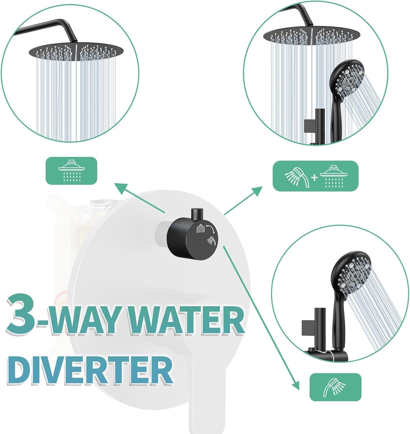 Enjoy Rain Shower and Handheld Together: If you are looking for a shower faucet that rain shower head and hand shower can work together, this 3-Way Diverter shower set is the best choice!