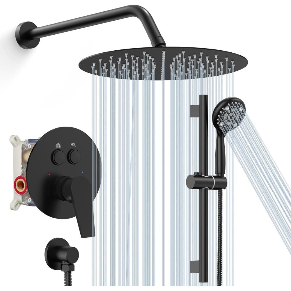Be the first to review “SR SUN RISE 12 Inch Oil Rubbed Bronze Shower System, Wall-Mount Adjustable 16-Inch Slide Bar with 6-Function Hand Shower Faucet Included Valve and Trim Kit(Matte Black)”