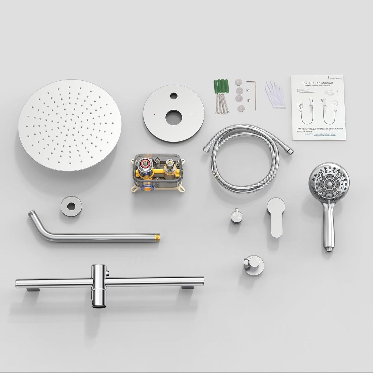 Be the first to review “SR SUN RISE 12 Inch Oil Rubbed Bronze Shower System, Wall-Mount Adjustable 16-Inch Slide Bar with 6-Function Hand Shower Faucet Included Valve and Trim Kit(Polished Chrome)”