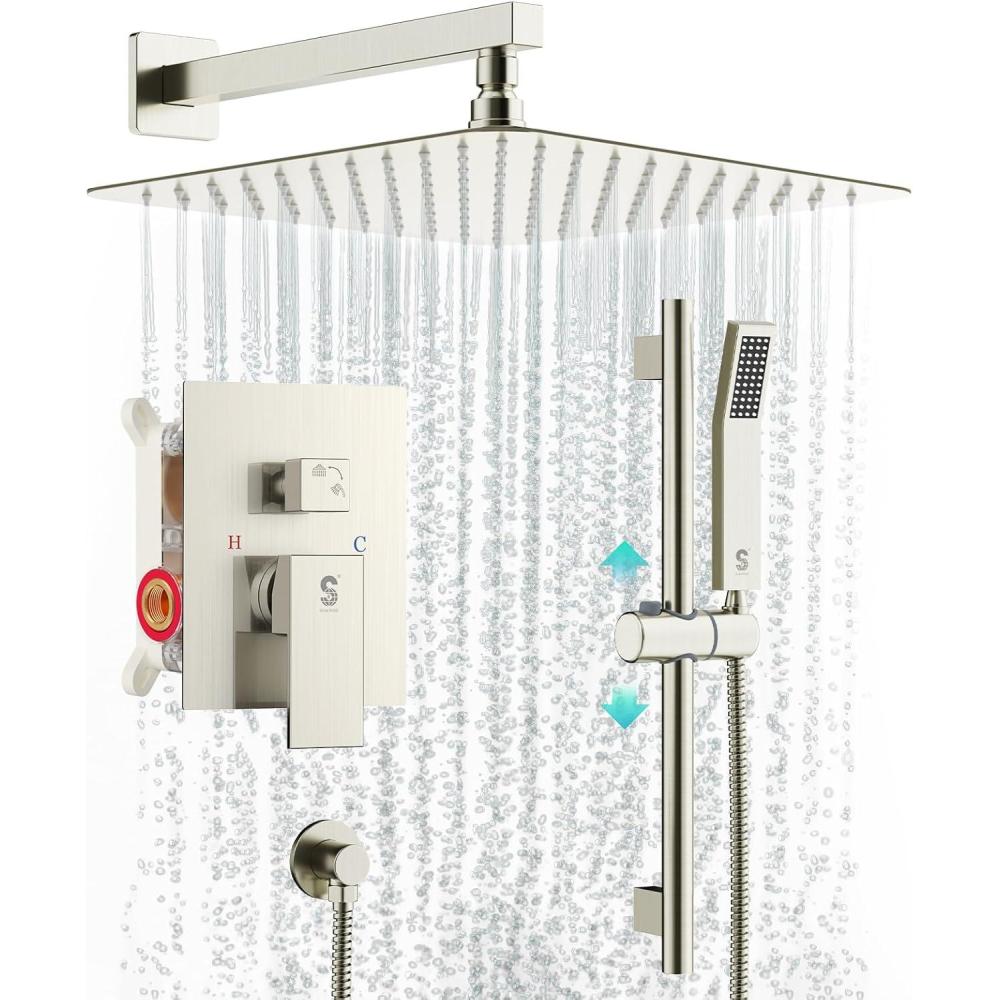 Be the first to review “SR SUN RISE 12 Inch Slide Bar Shower Faucet Luxury High Pressure Shower Heads and Handheld Spray Combo Set Wall Mounted Shower System Included Valve and Trim Kit, Matte Black(Brushed Nickel)”