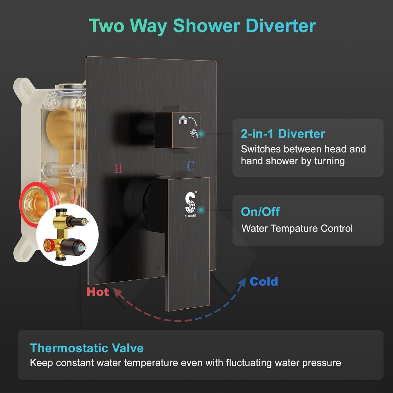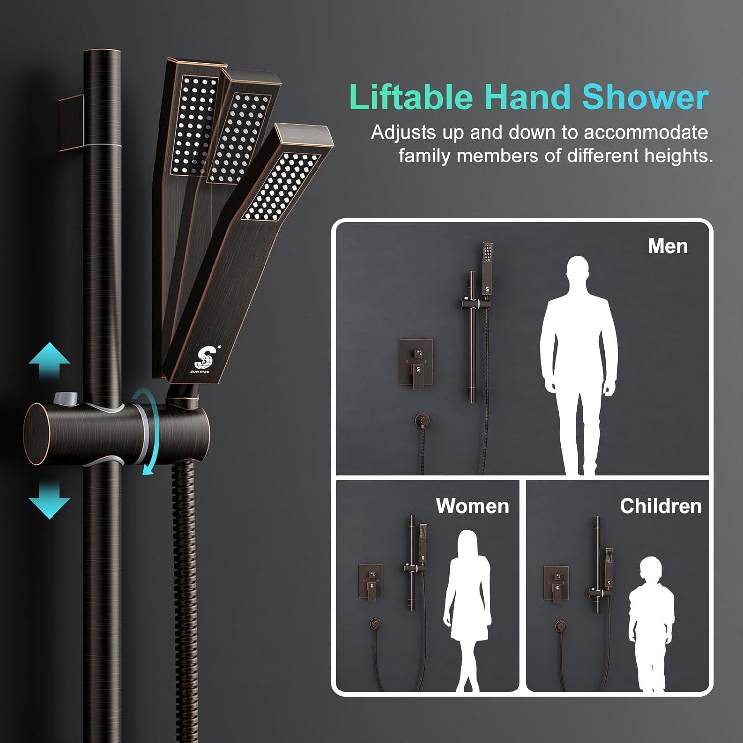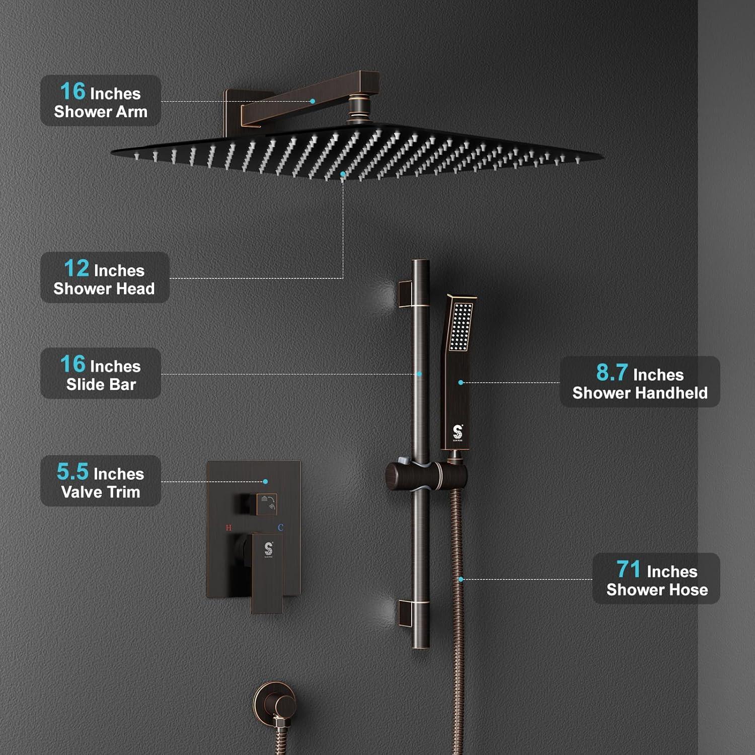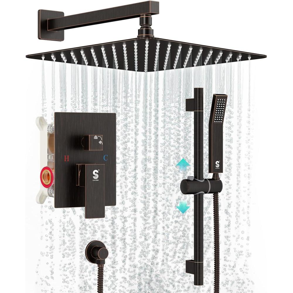 Be the first to review “SR SUN RISE 12 Inch Slide Bar Shower Faucet Luxury High Pressure Shower Heads and Handheld Spray Combo Set Wall Mounted Shower System Included Valve and Trim Kit, Matte Black(Oil Rubbed Bronze)”