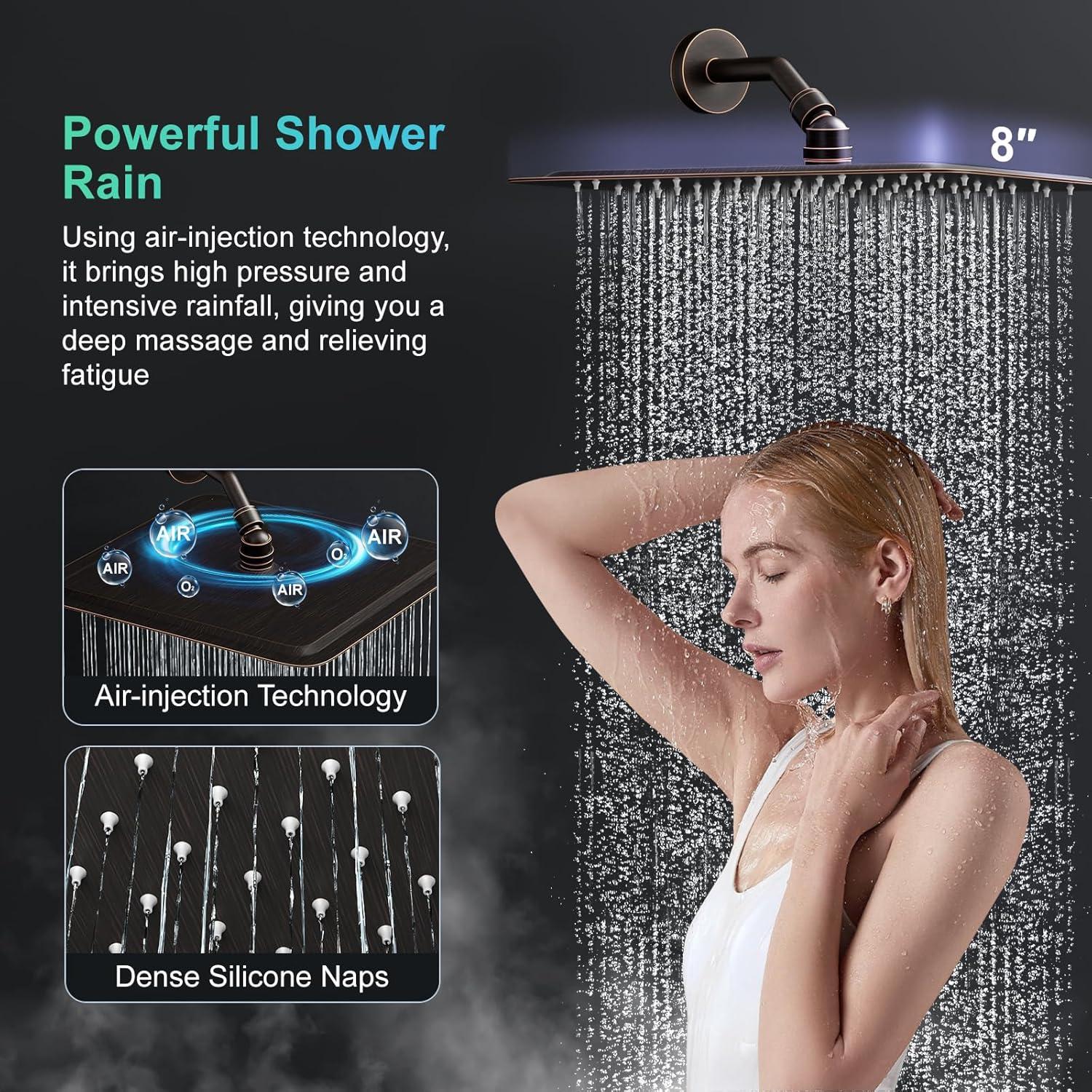Enjoy SPA at Home: Thanks to the ultra-thin design and Air Energy Technology of the rain shower, even in a low water pressure environment, when the water flows out after being squeezed through the ultra-small space, it can also achieve high pressure SPA shower experience.