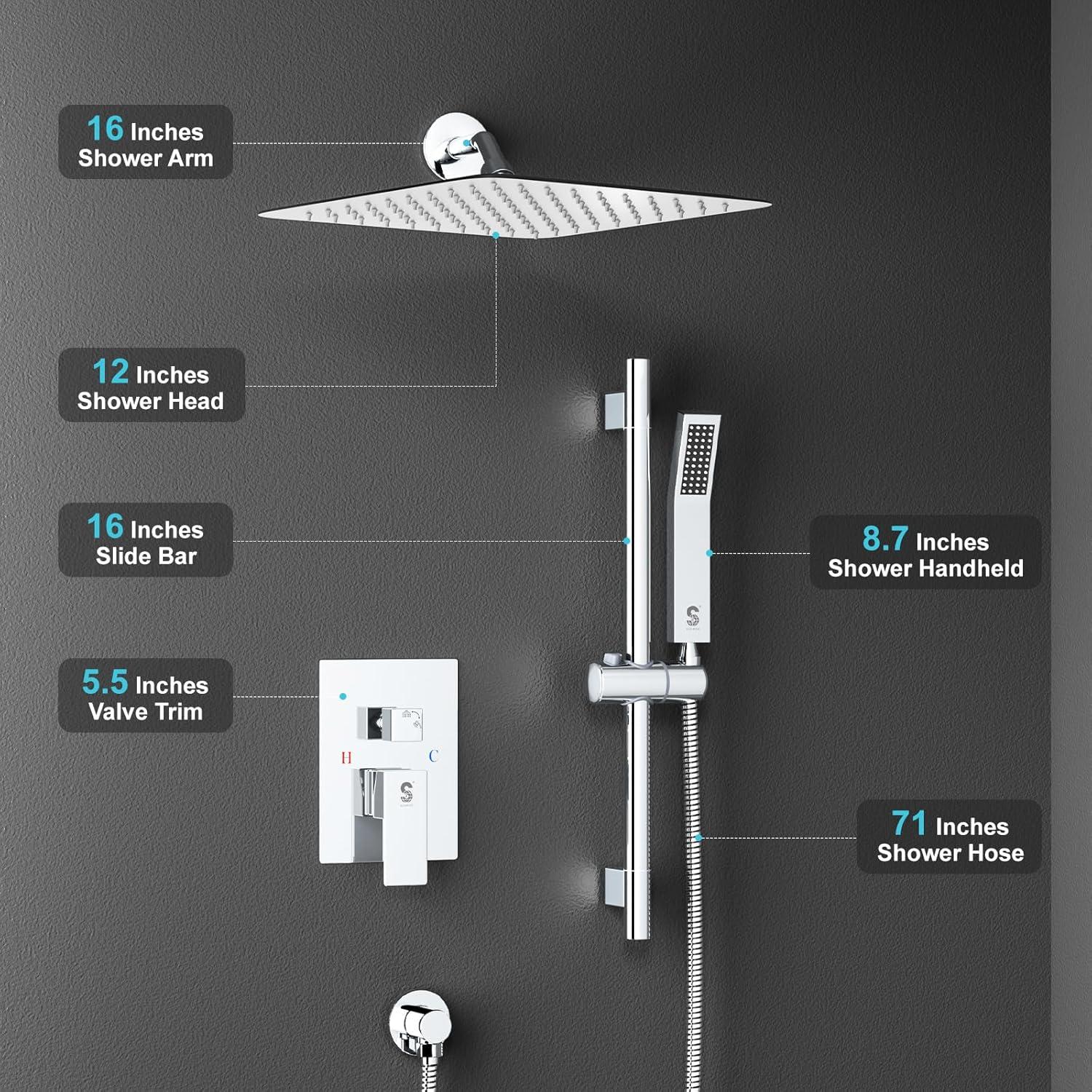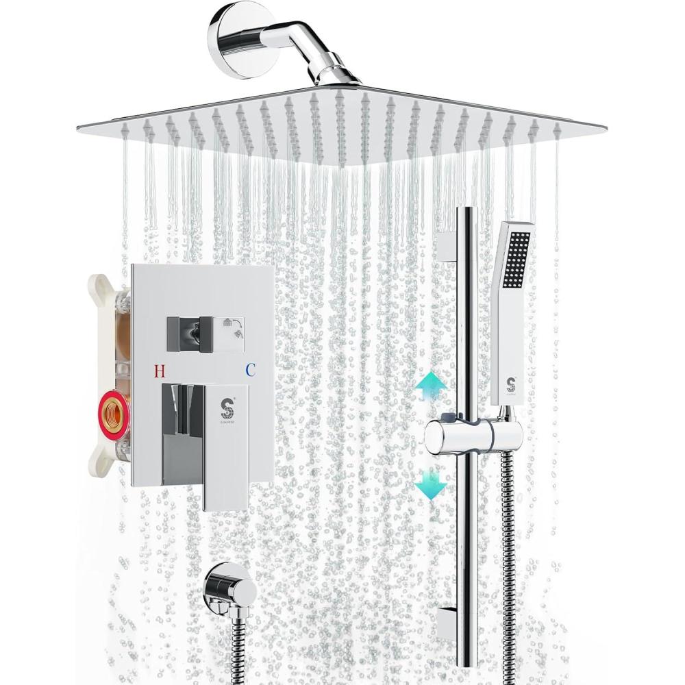 Be the first to review “SR SUN RISE 8 Inch Square Shower Faucet, Adjustable 16-Inch Slide Bar Hand Held Shower with Hose, Square Rain Shower Head and Handheld Spray Included Valve and Shower Trim Kit, Polished Chrome”