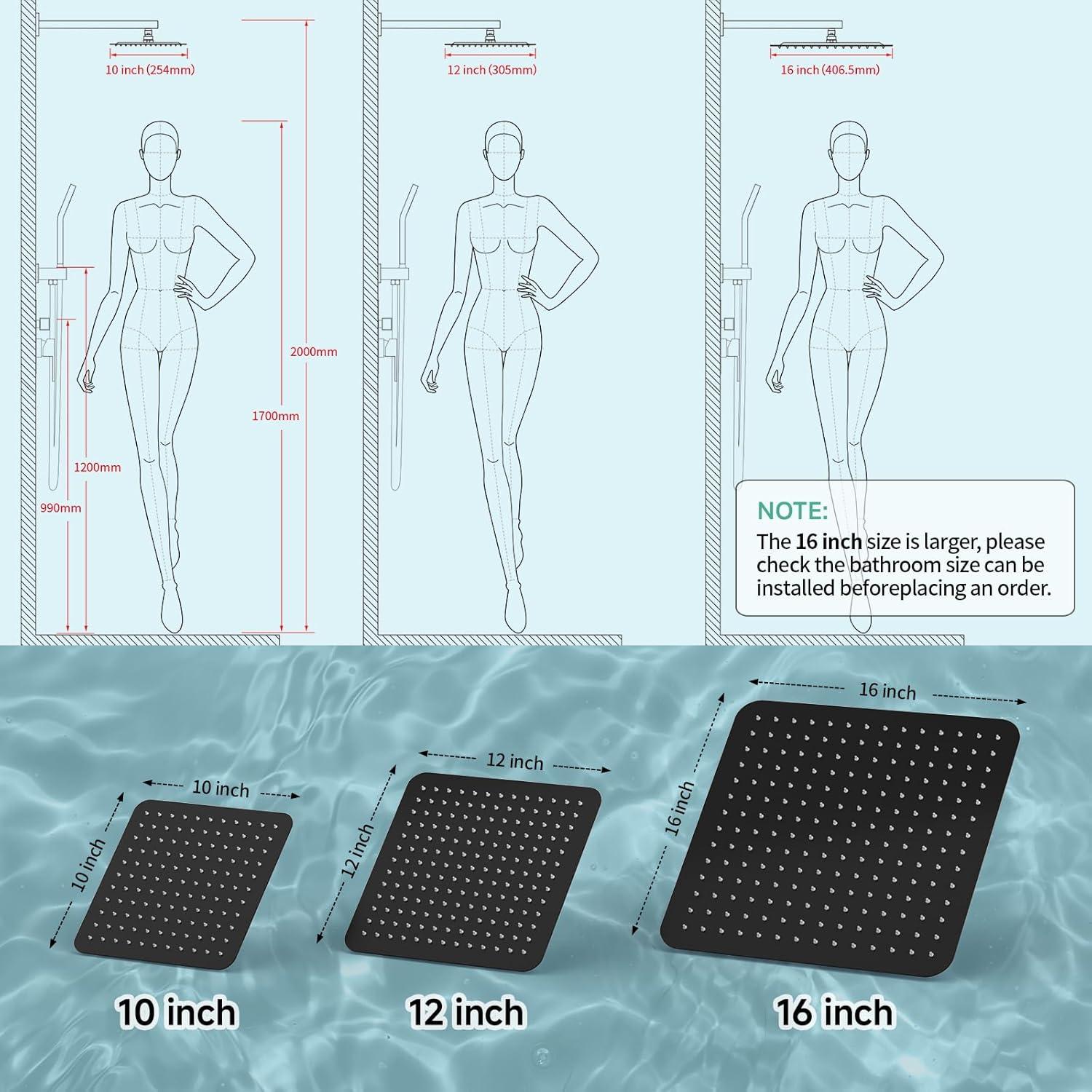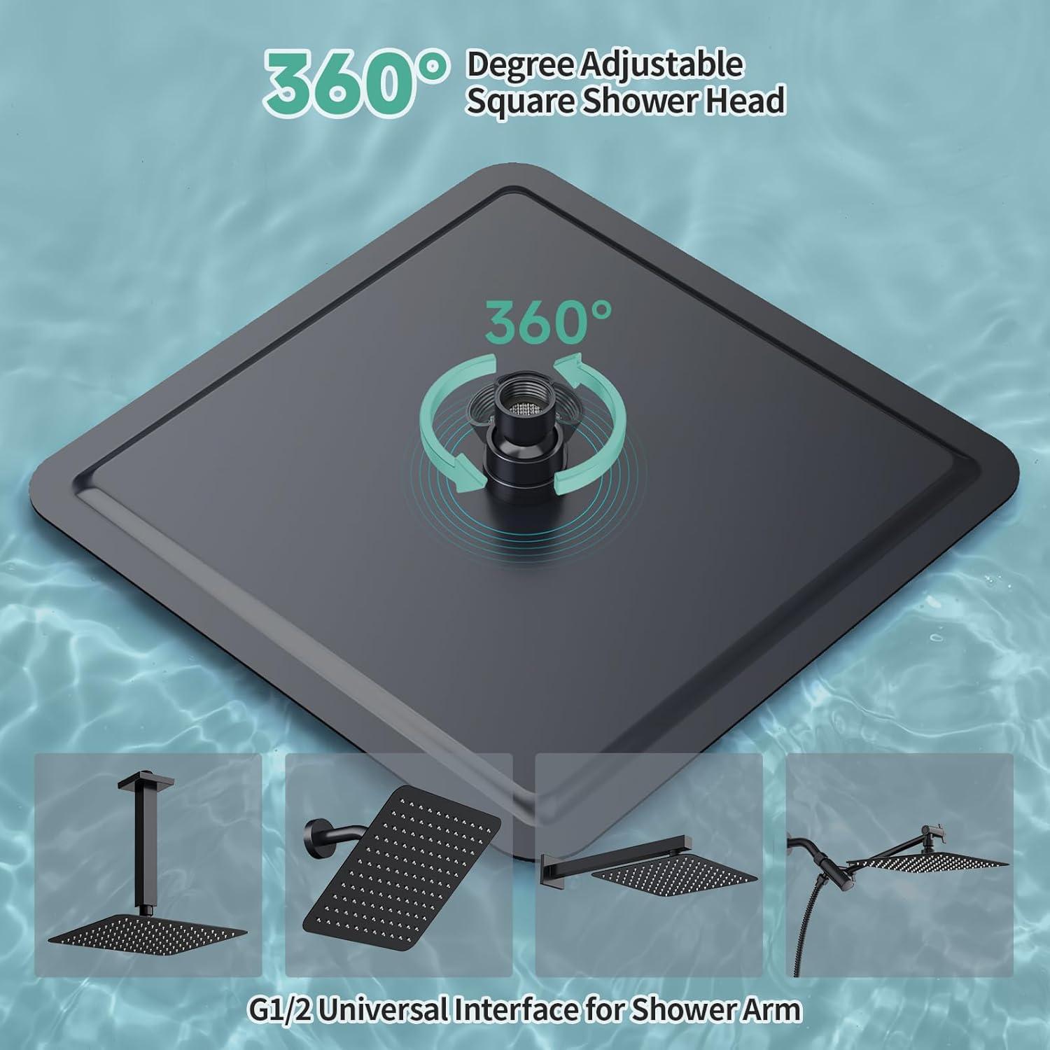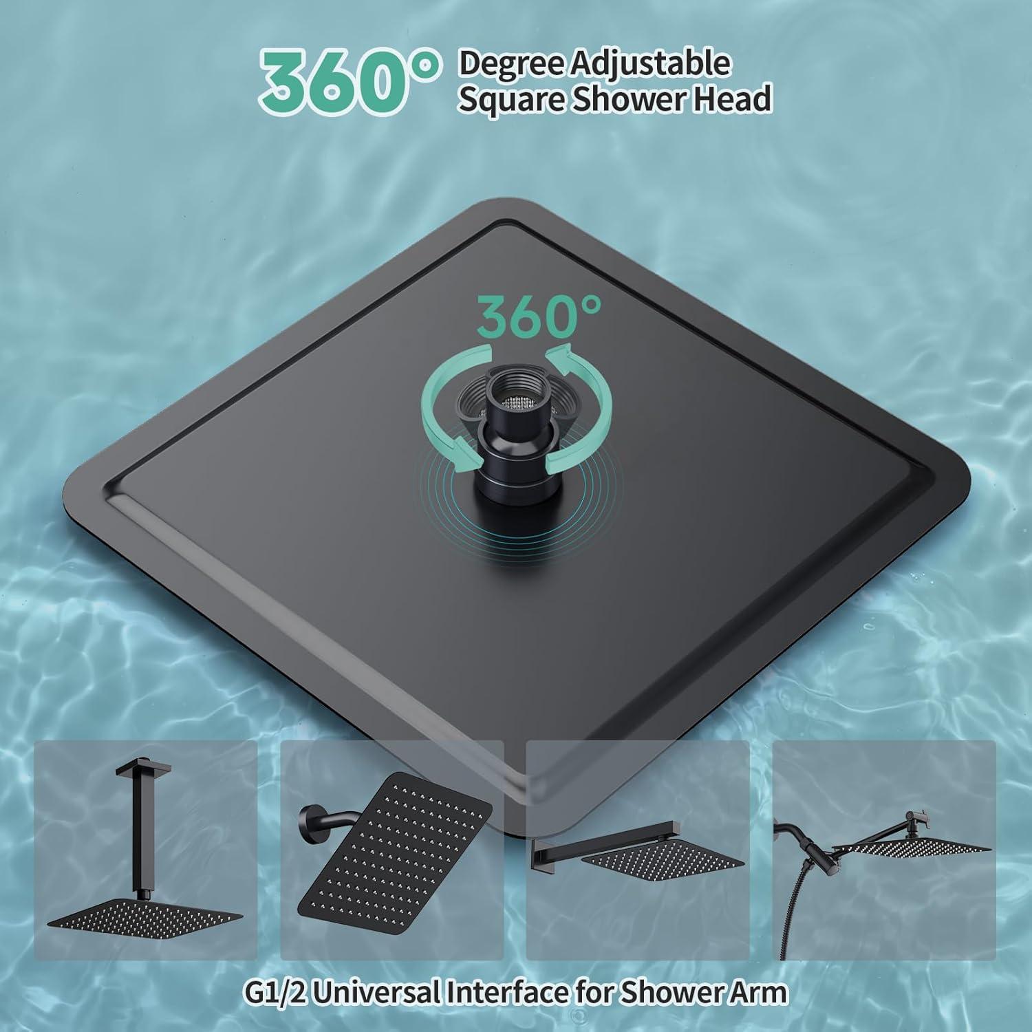 304 STAINLESS STEEL SHOWERHEAD: This luxurious bathroom square shower head features an integrated pressed panel design that minimizes seam exposure to air, significantly enhancing both durability and aesthetics while preventing rust, even effectively prevents fingerprints, keeping the surface bright and clean over time. It also addresses the issue of wear common with ordinary shower heads, extending the product’s lifespan and offering excellent value for money.