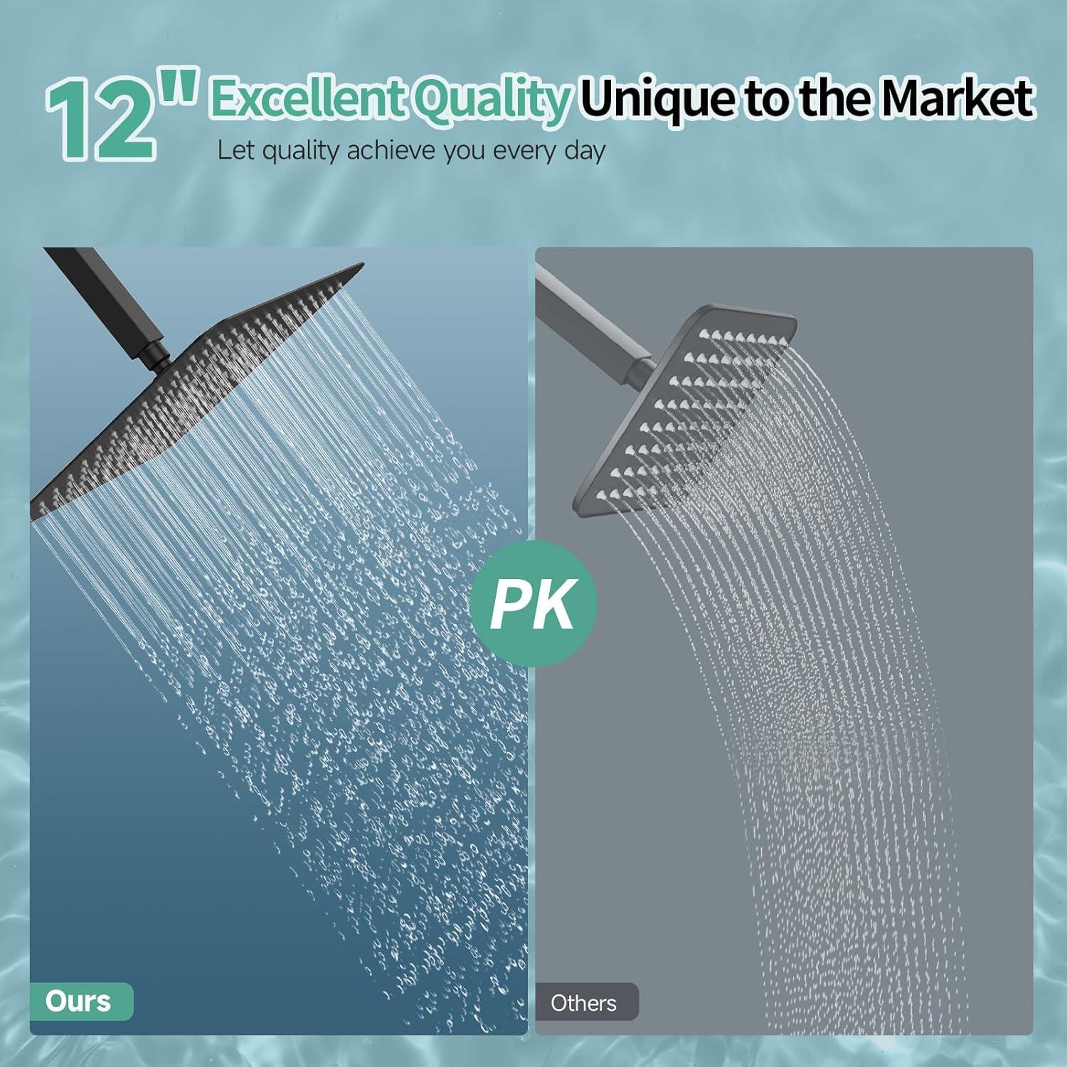 imageSR SUN RISE Luxury 12 Inch Large Square Stainless Steel Shower Head High Pressure Rainfall Showerhead Ultra Thin Water Saving Polished ChromeMatte Black