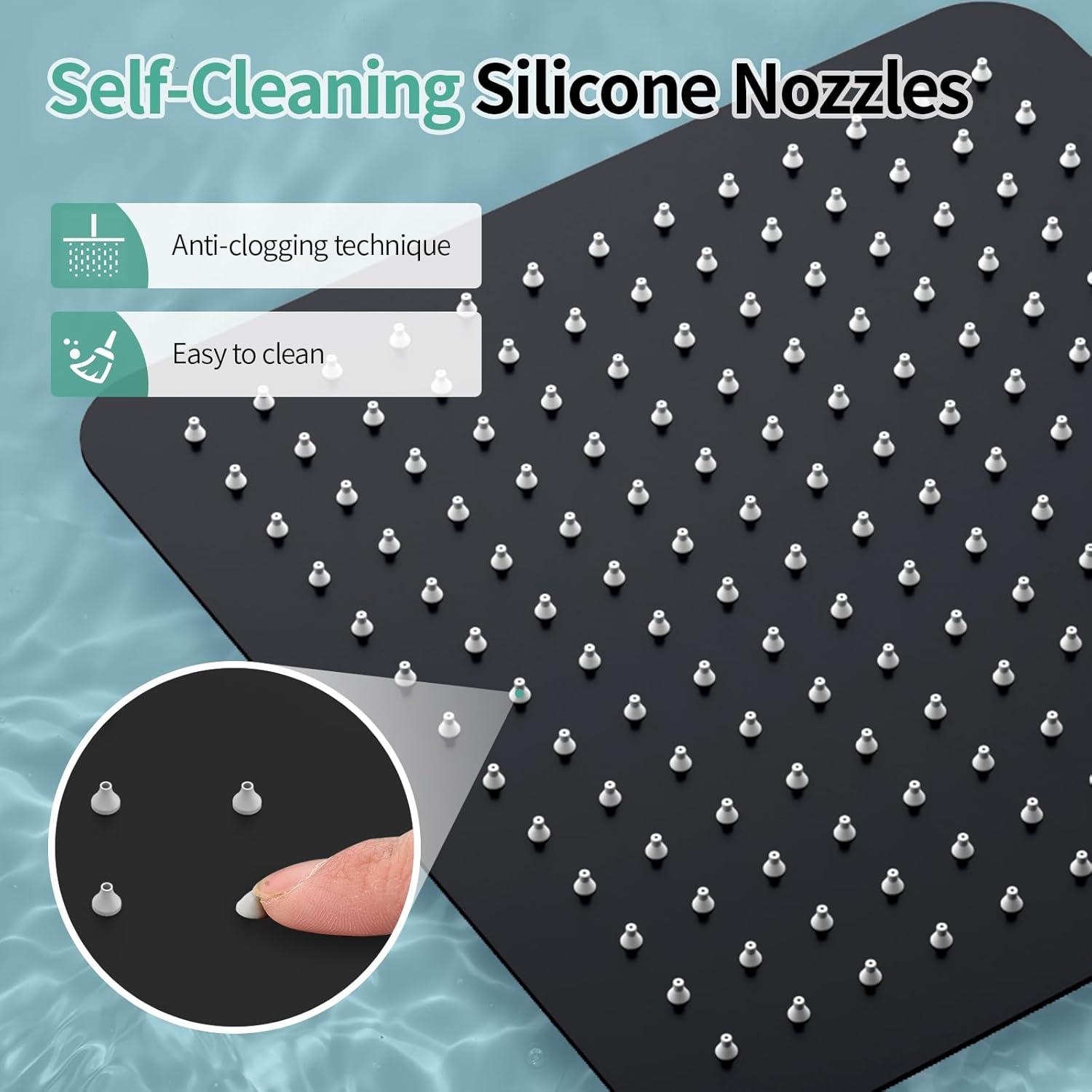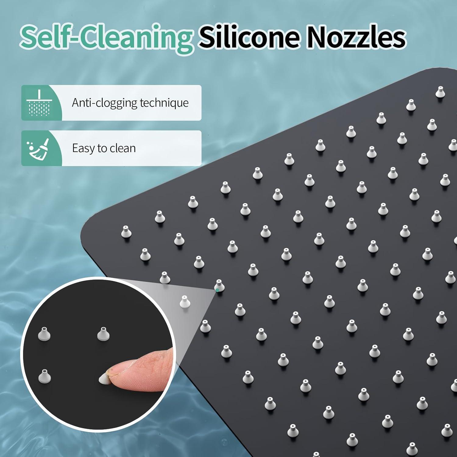 SELF-CLEANNING ANTI-CLOGGING: Worry-free showers with the advanced silicone nozzles of this showerhead. Designed to prevent clogging and ensure a strong, consistent water flow. Each shower head undergoes rigorous water blockage testing at the factory.Even as mineral buildup occurs, a simple touch cleans the nozzles, maintaining a smooth rainfall experience in your bathroom.