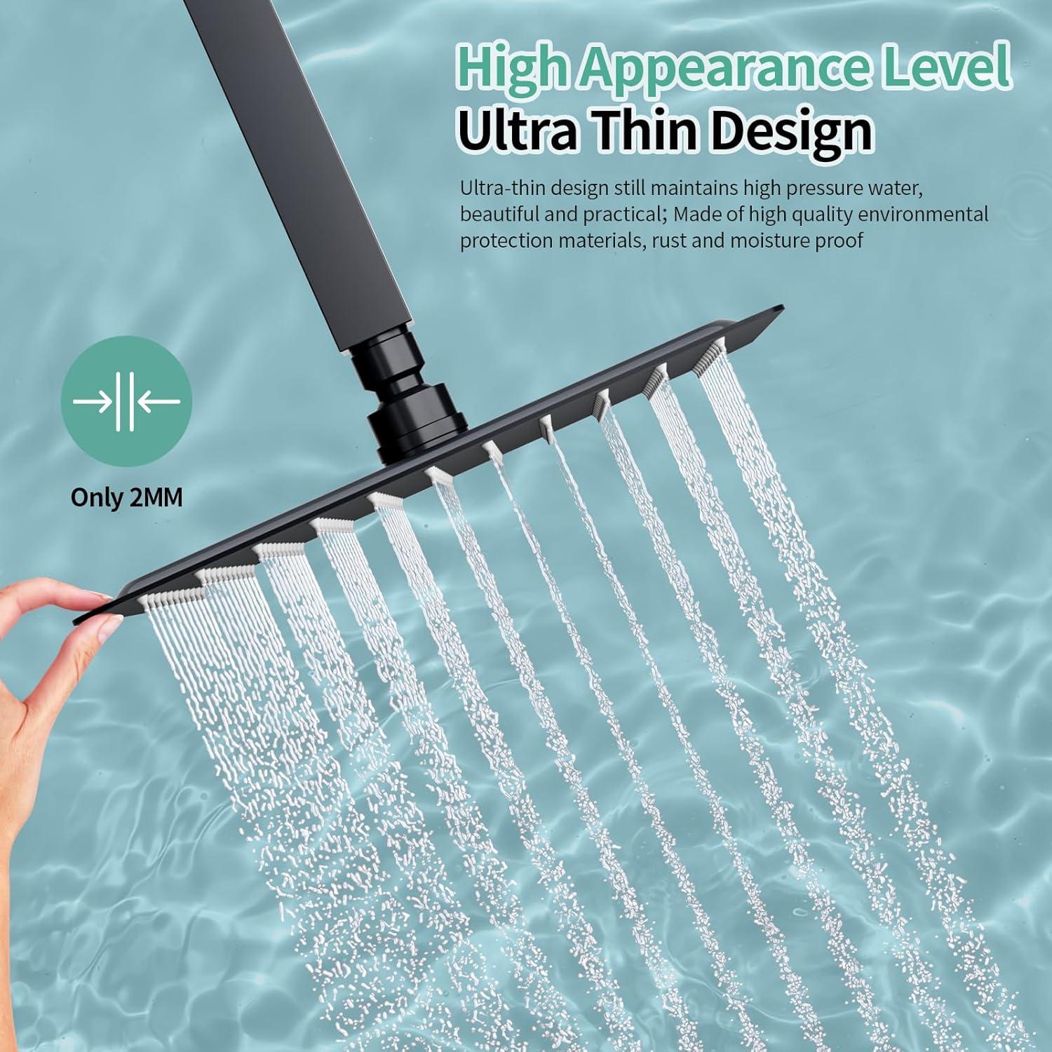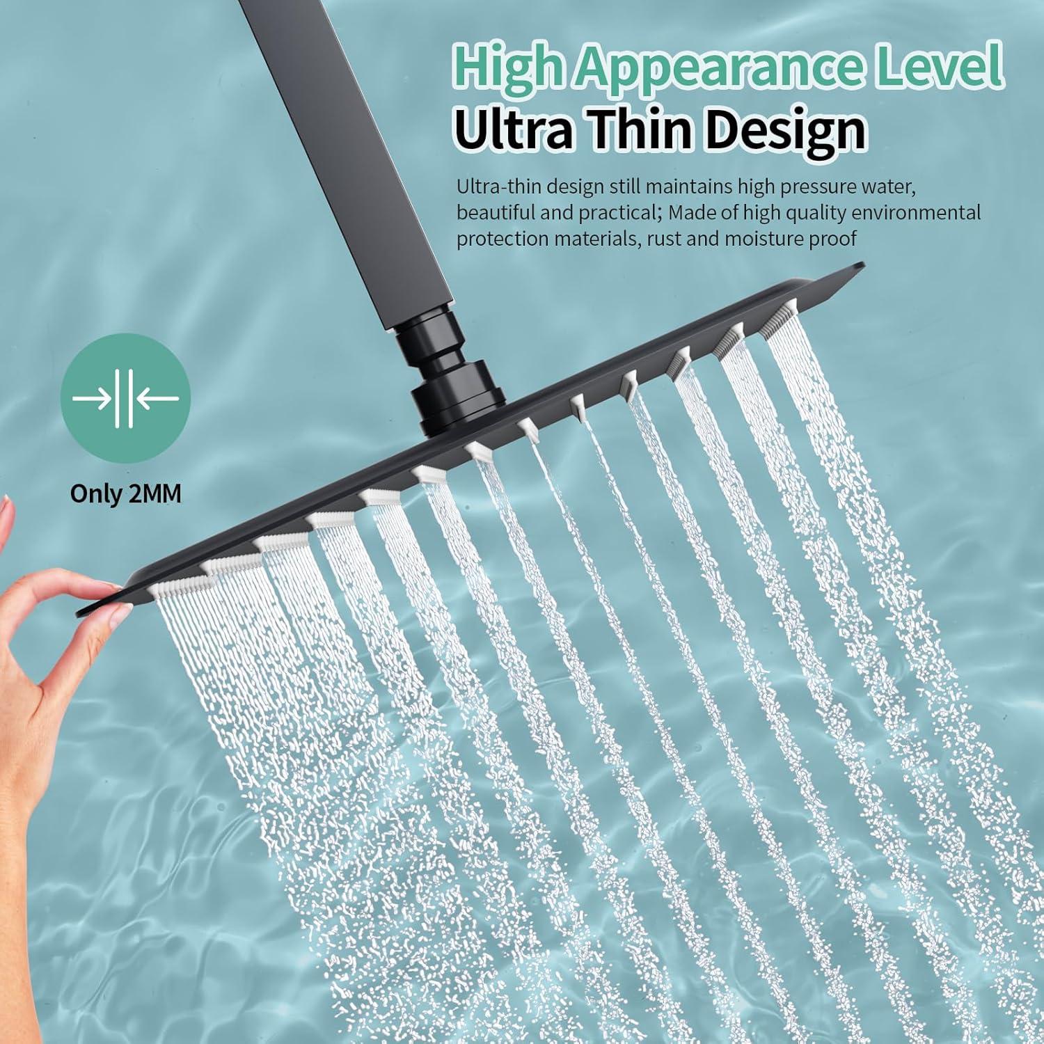 SR SUN RISE Luxury 12 Inch Large Square Stainless Steel Shower Head High Pressure Rainfall Showerhead Ultra Thin Water Saving Polished Chrome(Matte Black)