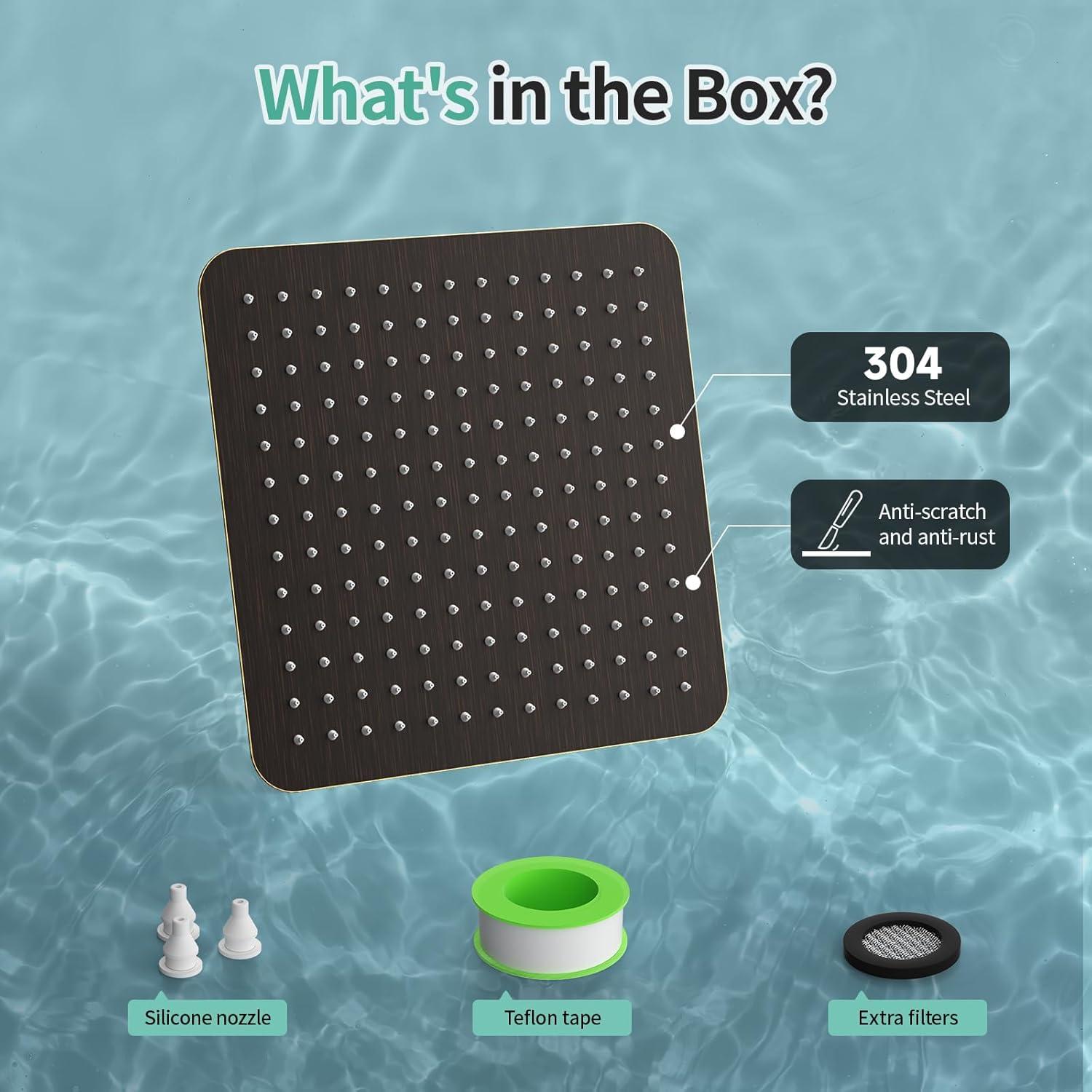 304 STAINLESS STEEL SHOWERHEAD: This luxurious bathroom square shower head features an integrated pressed panel design that minimizes seam exposure to air, significantly enhancing both durability and aesthetics while preventing rust, even effectively prevents fingerprints, keeping the surface bright and clean over time. It also addresses the issue of wear common with ordinary shower heads, extending the product’s lifespan and offering excellent value for money.
