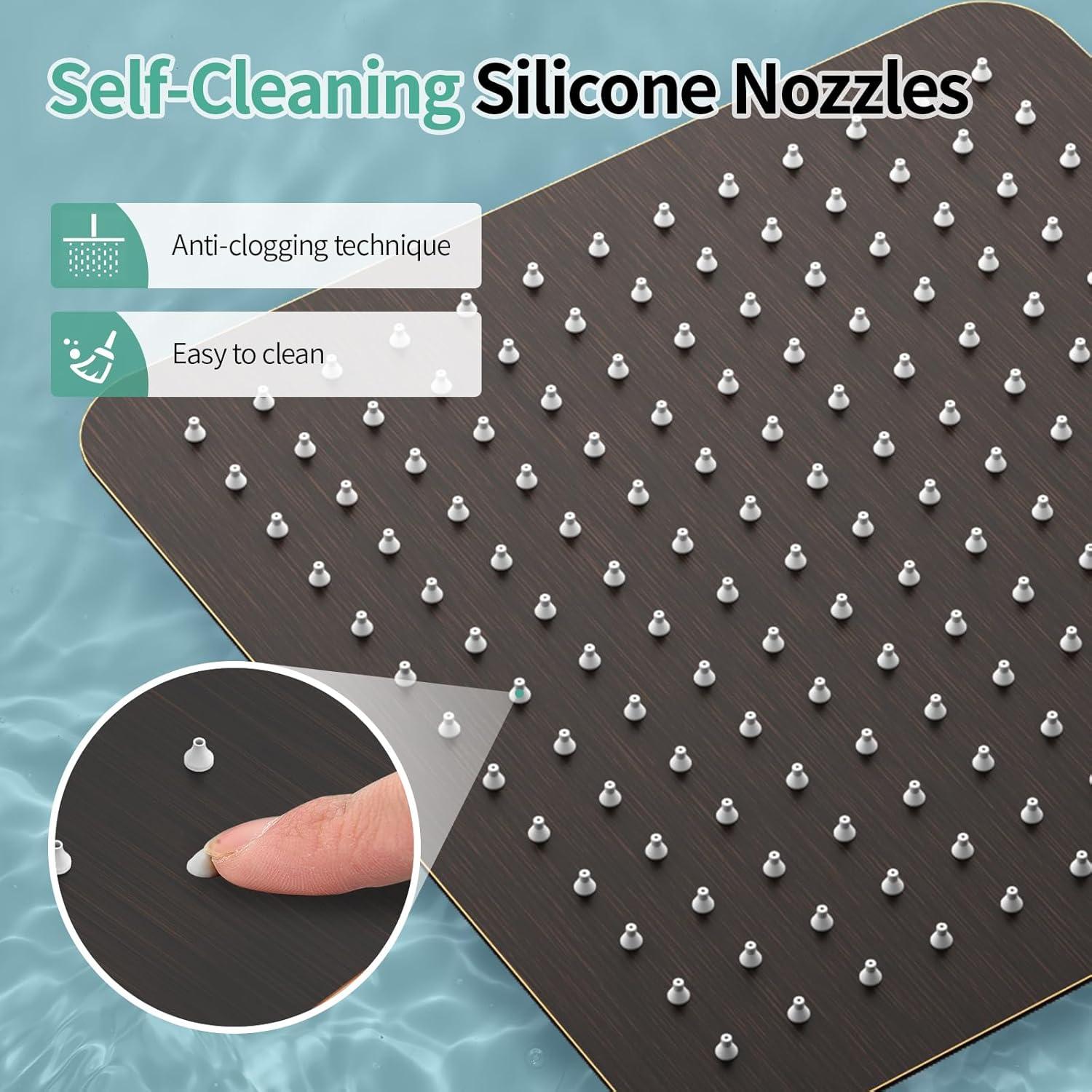 SELF-CLEANNING ANTI-CLOGGING: Worry-free showers with the advanced silicone nozzles of this showerhead. Designed to prevent clogging and ensure a strong, consistent water flow. Each shower head undergoes rigorous water blockage testing at the factory.Even as mineral buildup occurs, a simple touch cleans the nozzles, maintaining a smooth rainfall experience in your bathroom.