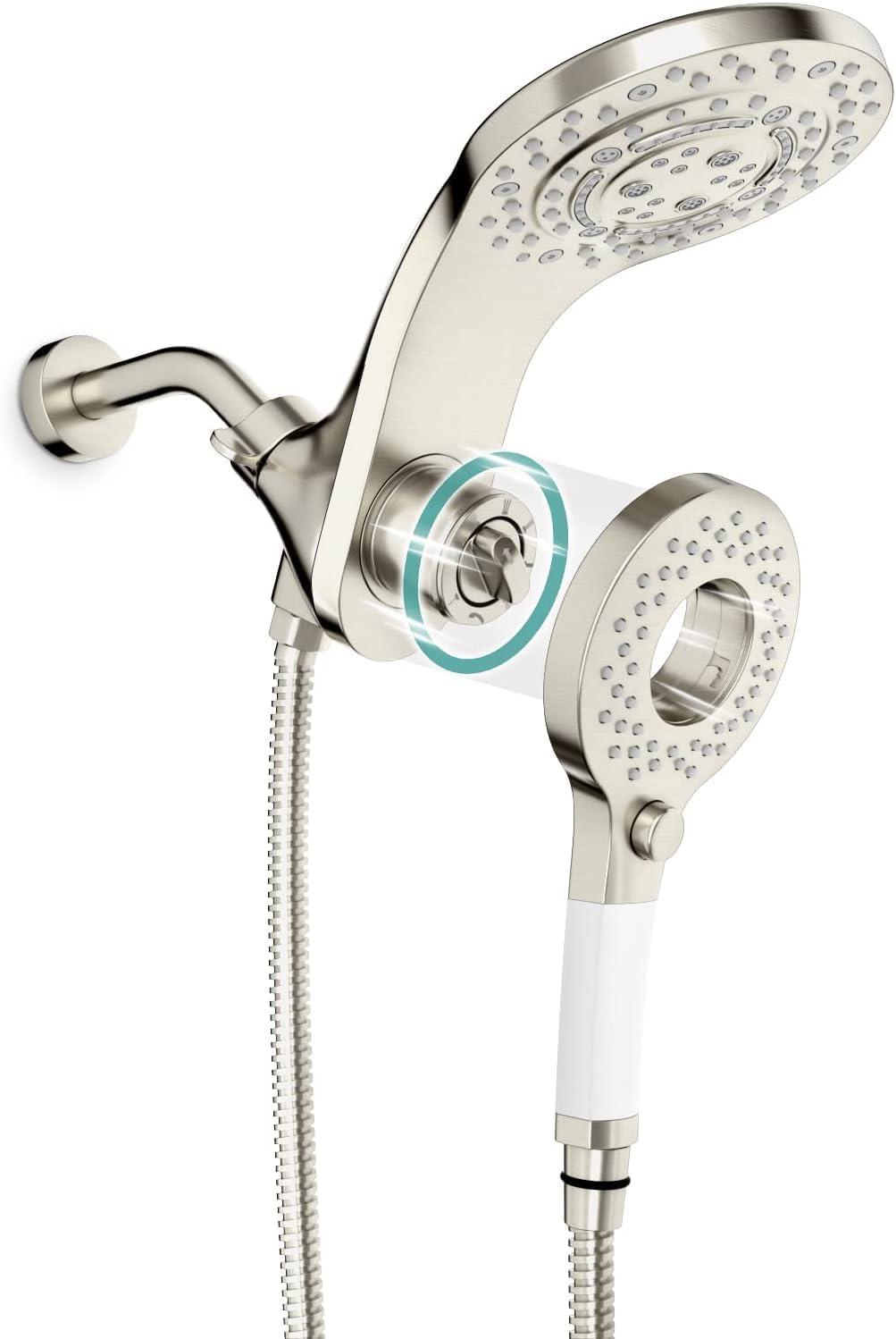 SR SUN RISE Magnetic Shower Faucet with Handheld Sprayer 2-in-1 Dual Shower Head with 8-Spray Hand Held Shower Wand and ON/OFF Switch for Saving Water 1.8 GPM Shower Combo, Brushed Nickel