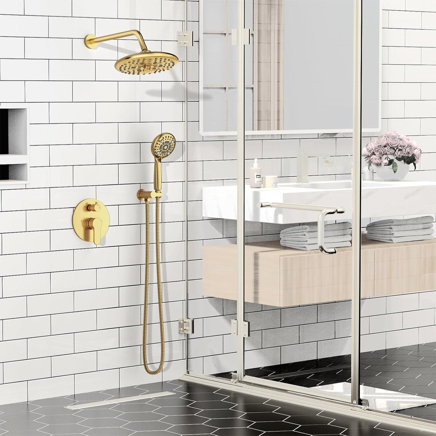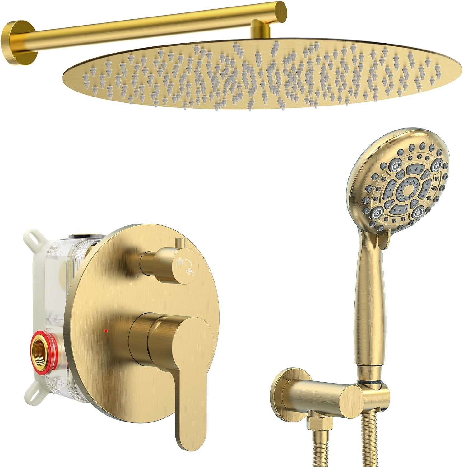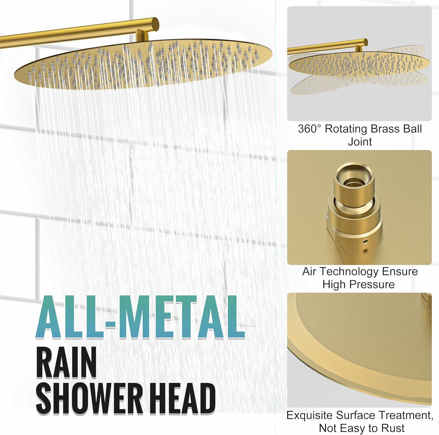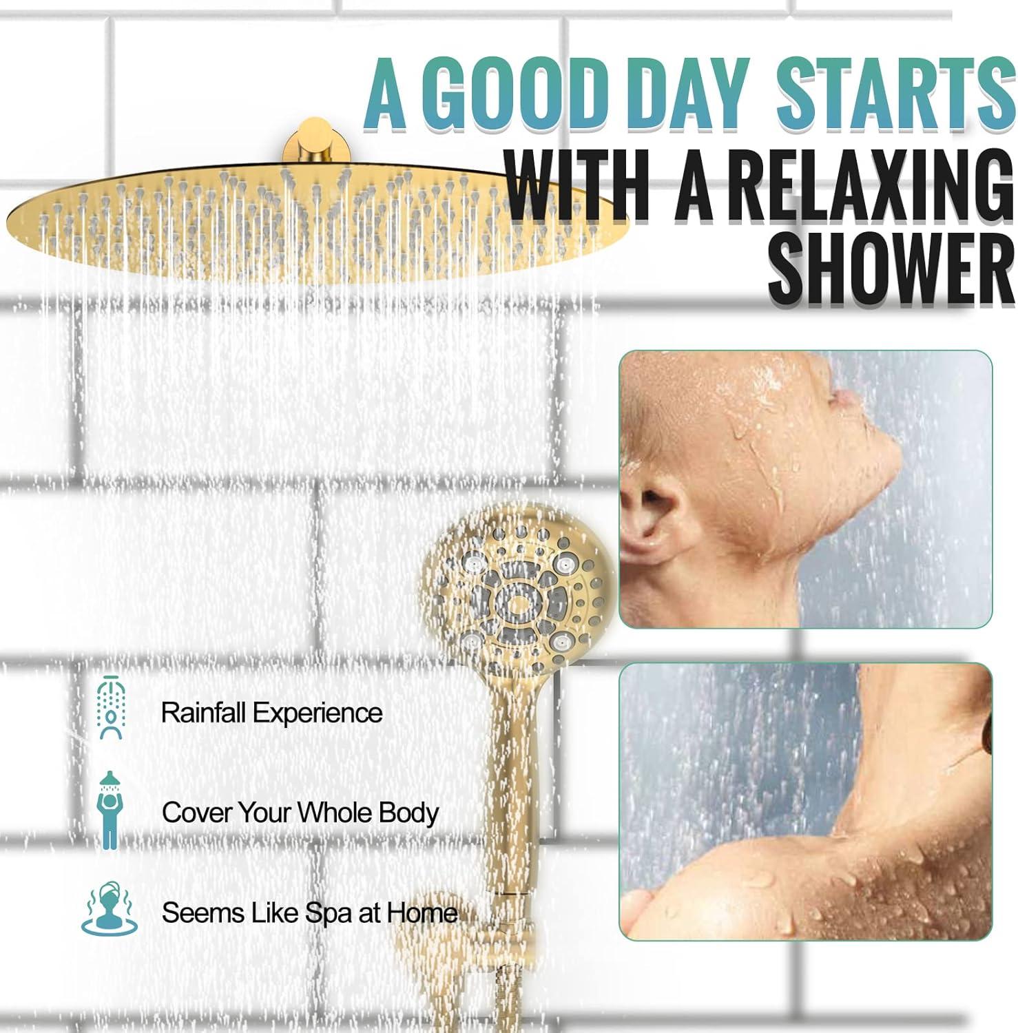 SR SUN RISE Shower Faucet - 10 Inch Multifunctional High Pressure Shower Head System with Handheld Shower Head Fixtures - Valve Included - Matte Black(Brushed Gold)