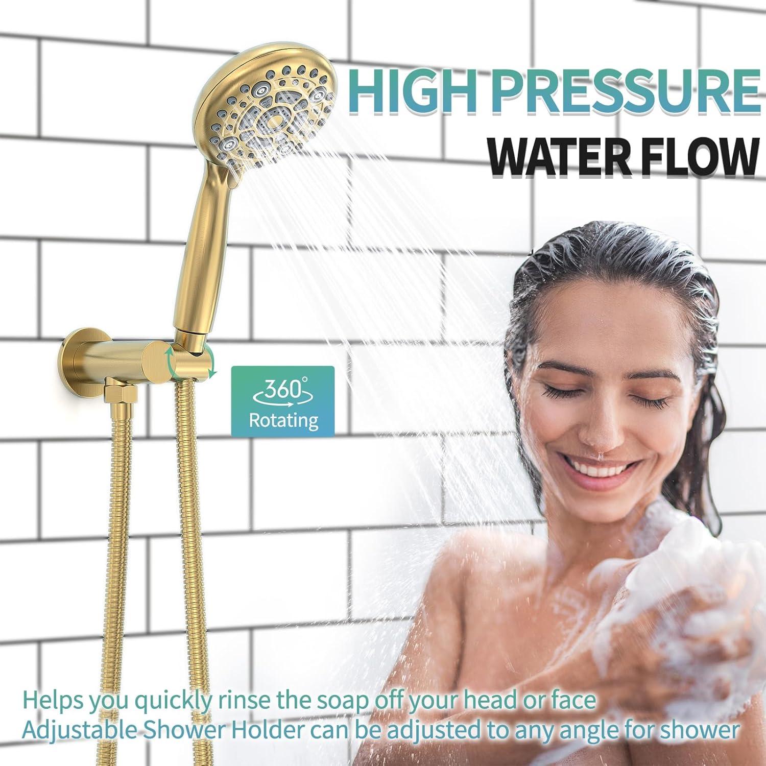 imageSR SUN RISE Shower Faucet  10 Inch Multifunctional High Pressure Shower Head System with Handheld Shower Head Fixtures  Valve Included  Matte BlackBrushed Gold