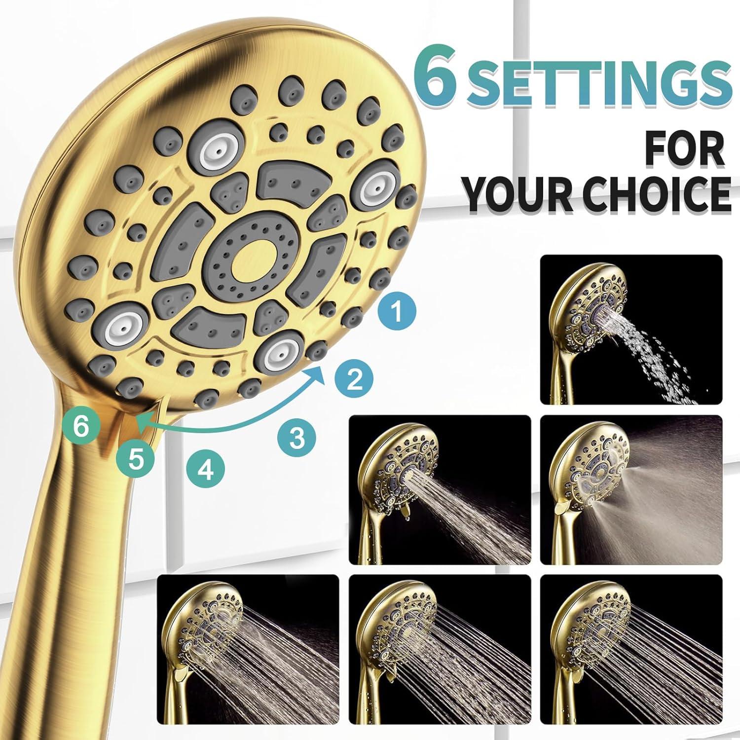 8-Modes Rainfall Shower Head: 10 Inch Rain Shower Head features a 360° rotating button for easy adjustment of its 8 rainfall modes. The soft silicone nozzles easily remove accumulated minerals for long-lasting performance. 6-Function Handheld Spray: Handheld shower head featuresRainfall, Rainfall+Trickle, Power Massage, Rainfall+Spray, Power Spray, Water Save Trickle. Like our other shower head, it adjusts easily for optimal performance in low water pressure environments.