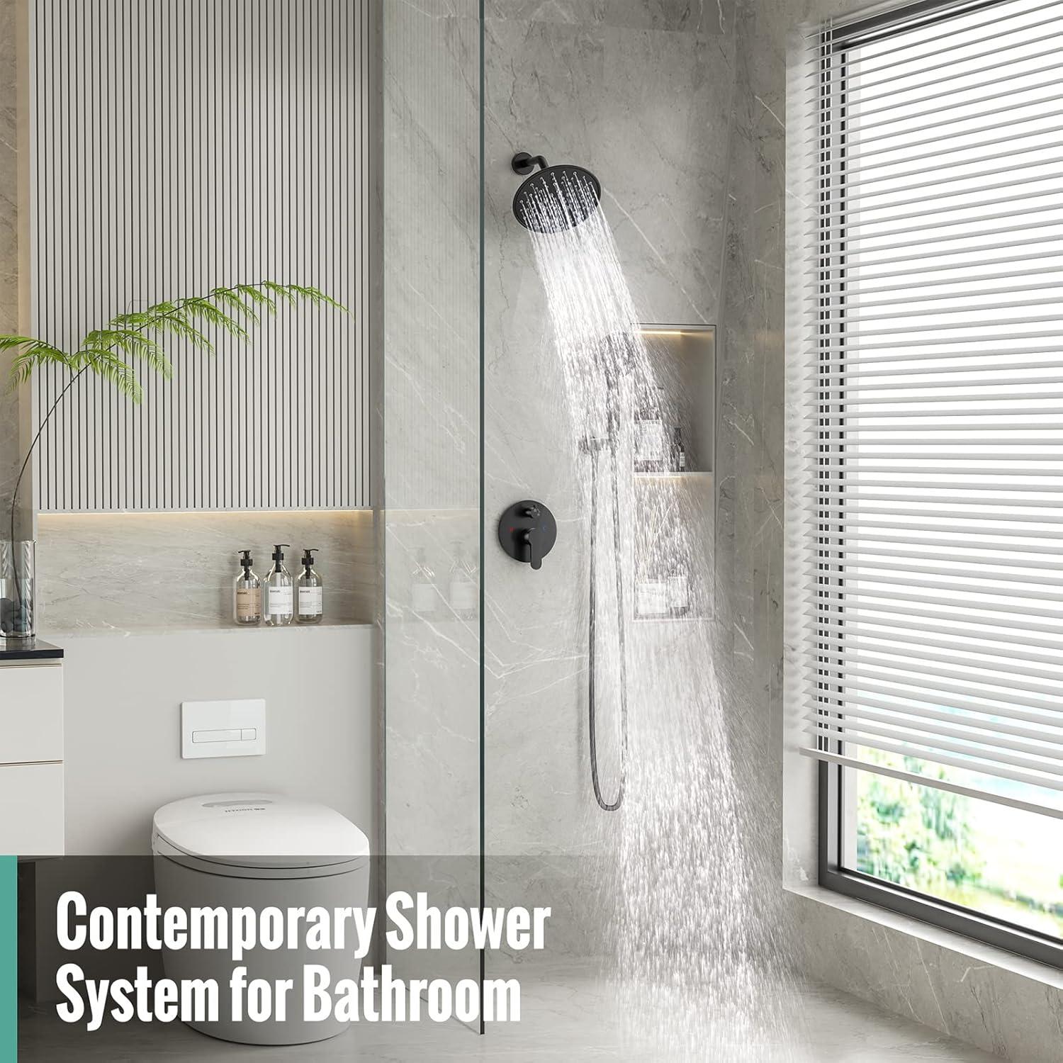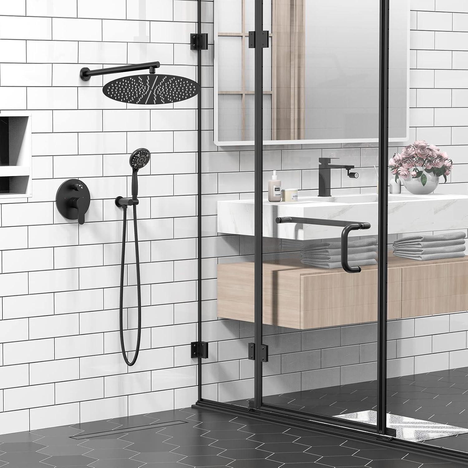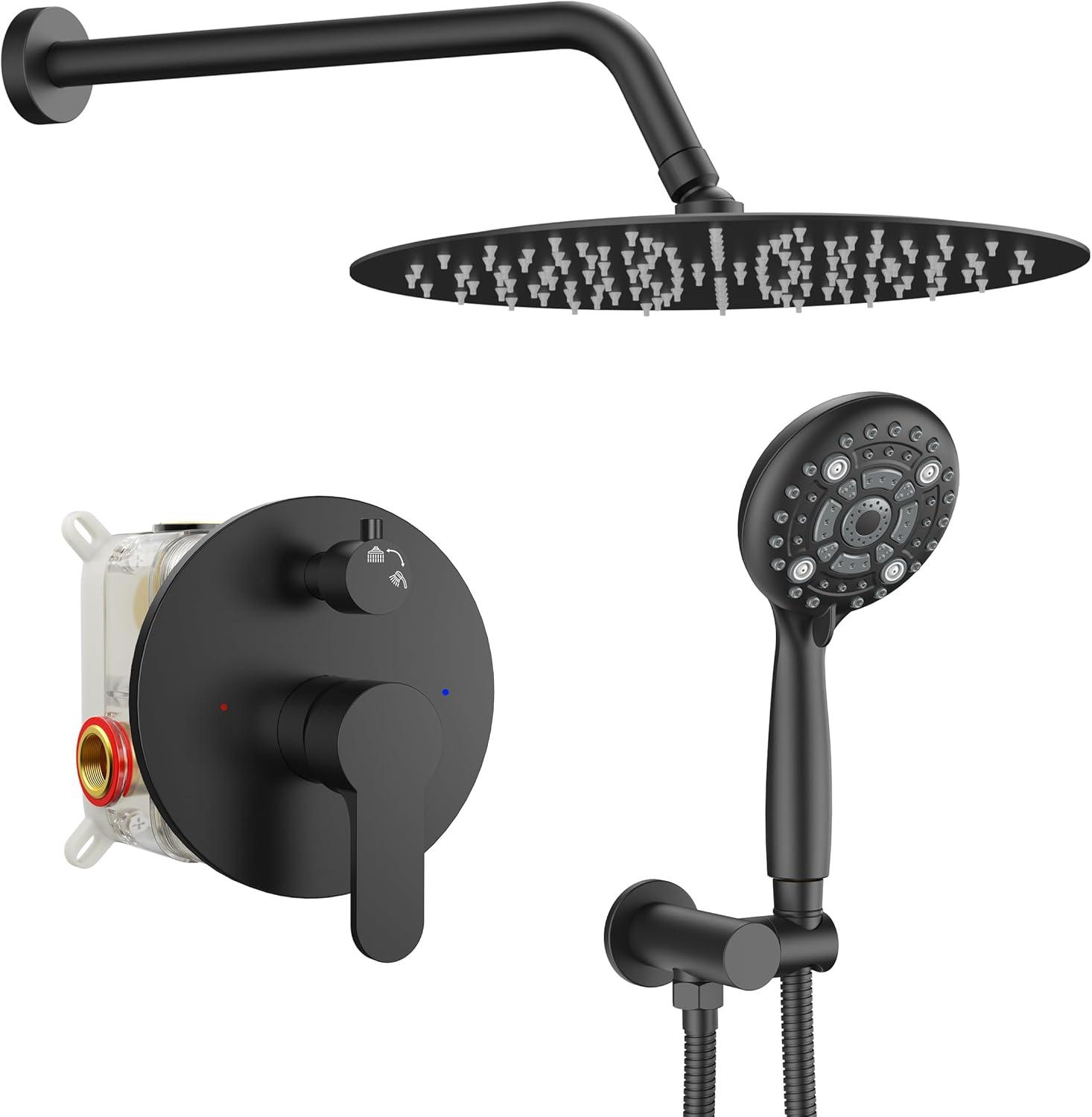 SR SUN RISE Shower Faucet - 10 Inch Multifunctional High Pressure Shower Head System with Handheld Shower Head Fixtures - Valve Included - Matte Black(Matte Black)