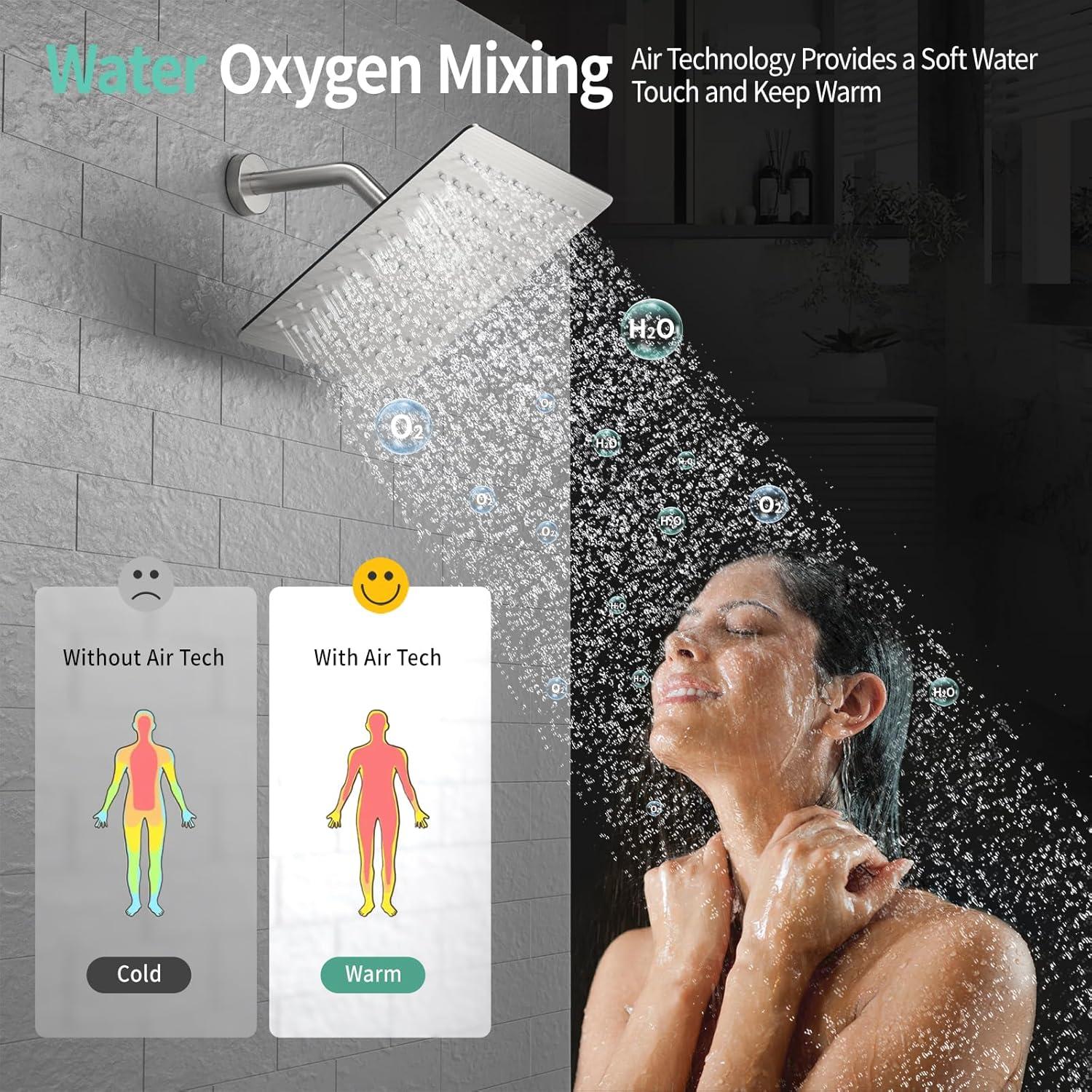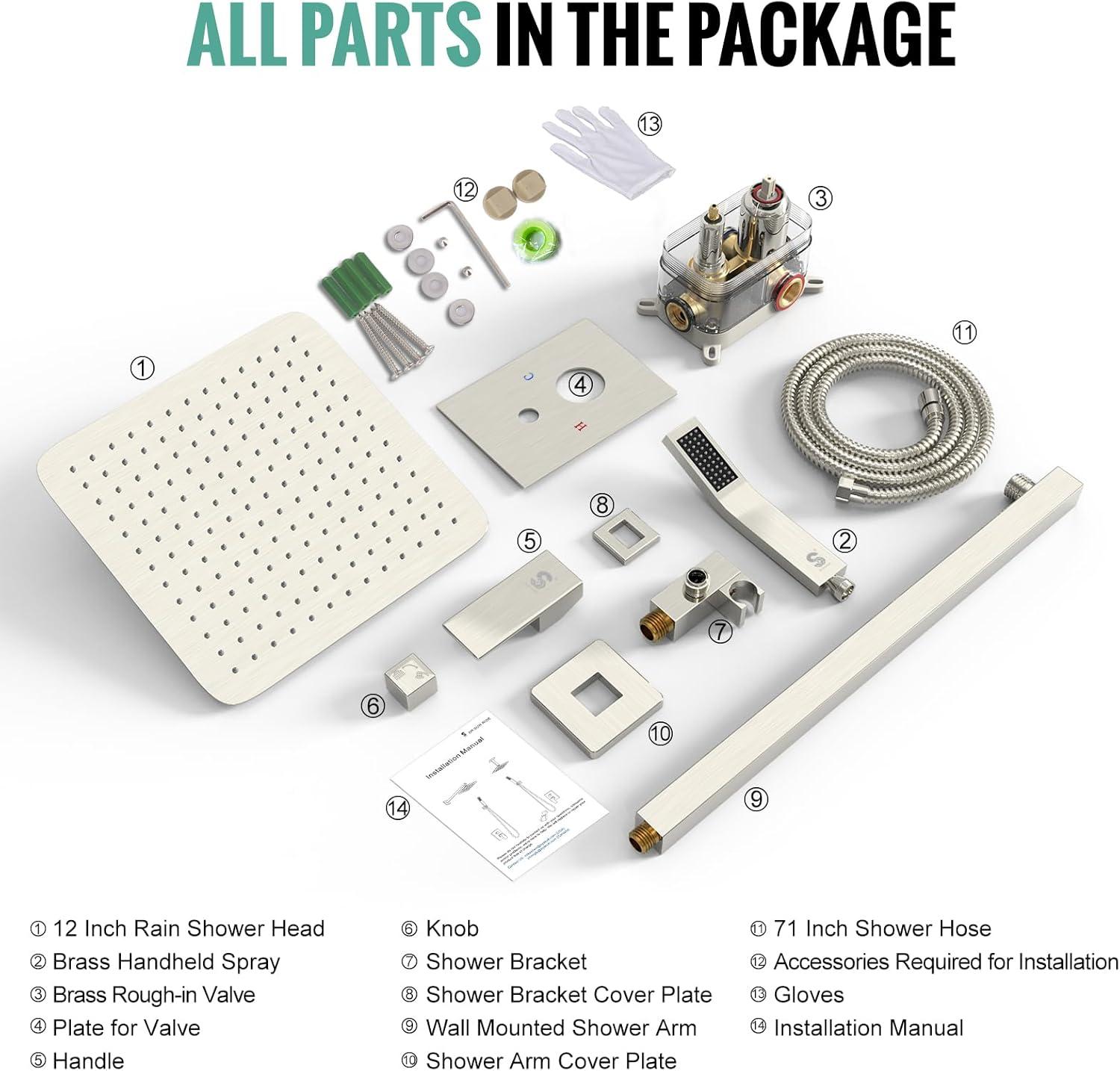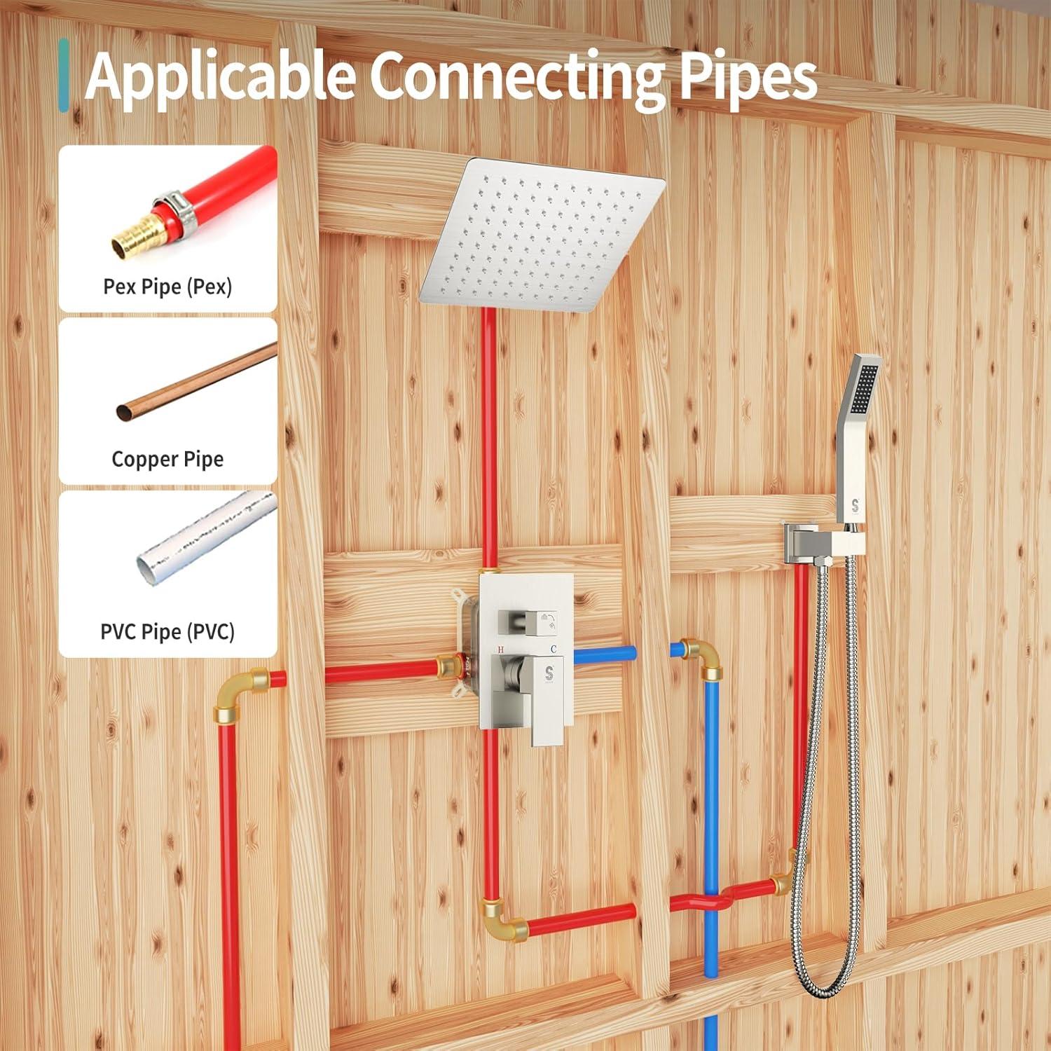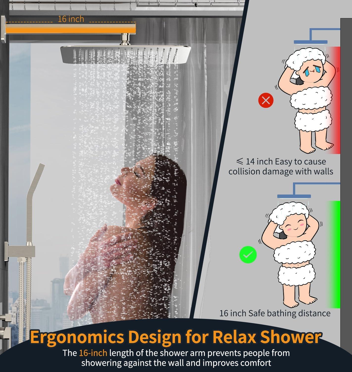 Complete Shower System Included: This shower faucet set includes everything you need for a luxurious upgrade: a 10-inch rain shower head, a handheld shower head, a 71-inch shower hose, a 16-inch shower arm, a handheld bracket, a mixing valve, a panel, a handle, a mode knob, shower arm and bracket covers, and all necessary installation accessories.