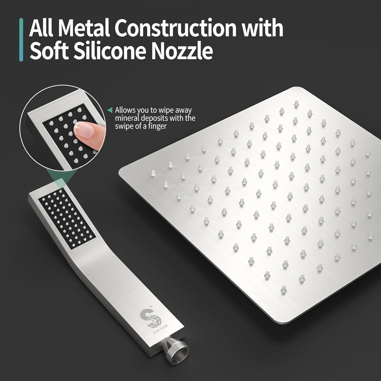 Durable 304 Stainless Steel Construction: Crafted from premium 304 stainless steel, this Rain Shower Head and Handle Set is designed to resist rust and wear, ensuring long-lasting durability. It effortlessly withstands high temperatures and maintains its polished finish for years to come.