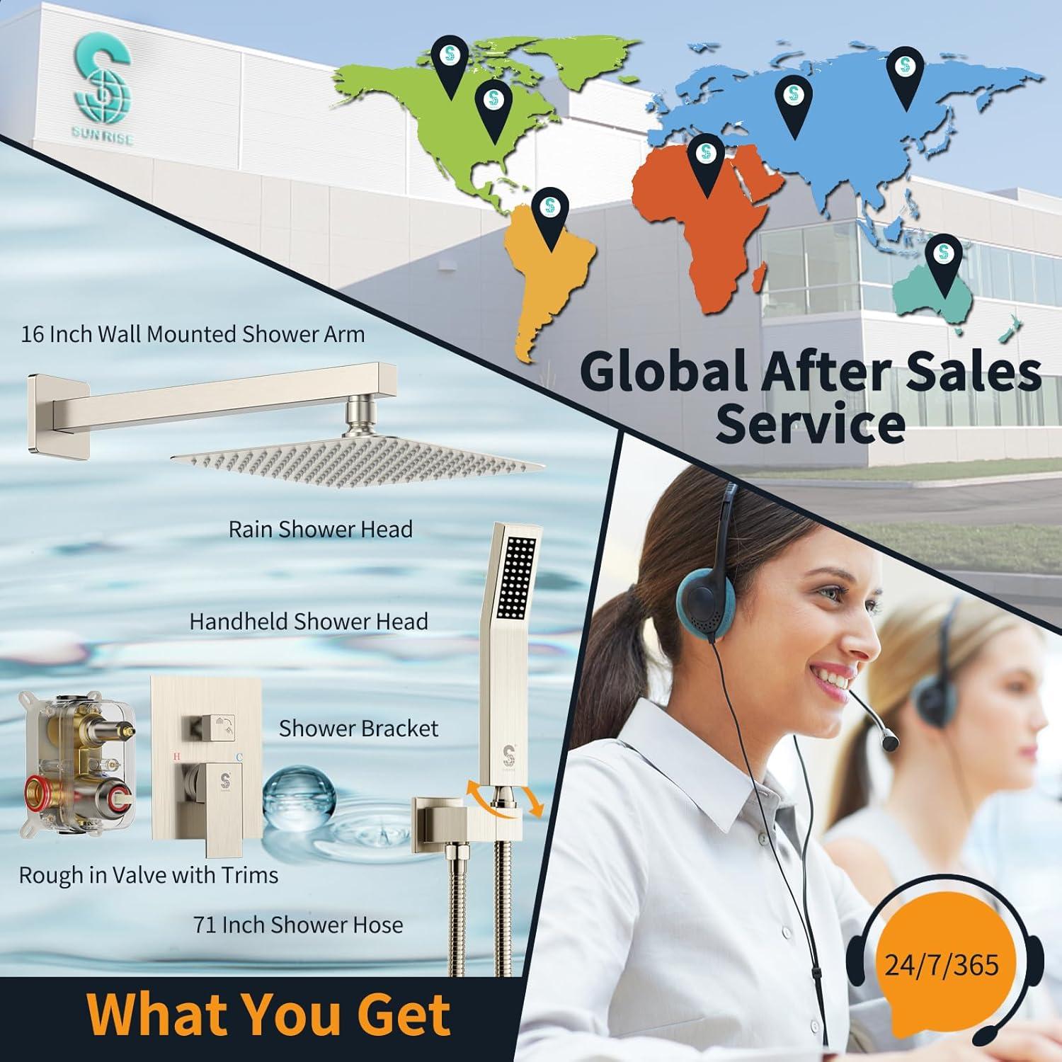 Be the first to review “SR SUN RISE Shower Faucet Set Bathroom Square Rain Shower Head with Handheld Spray Wall Mounted Rainfall Shower Fixtures Brushed Nickel Shower Faucet Trim Repair Kits (Contain Shower Valve)10 Inches(Brushed Nickel)”
