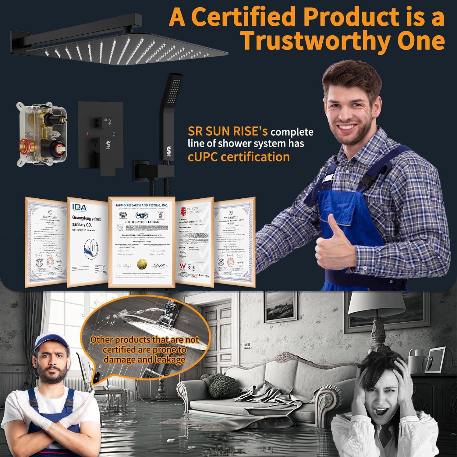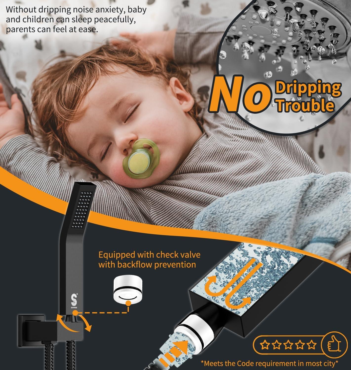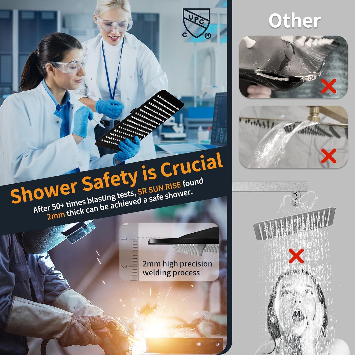 Reliable Support & Certified Safety: Backed by 24/7 customer support, this Rain Shower Head and Handle Set ensures a stress-free experience. It features a cUPC certified pressure balance valve with built-in check valves to monitor water pressure and prevent scalding, approved by the California Energy Commission for standard 1/2-inch US pipe connections.