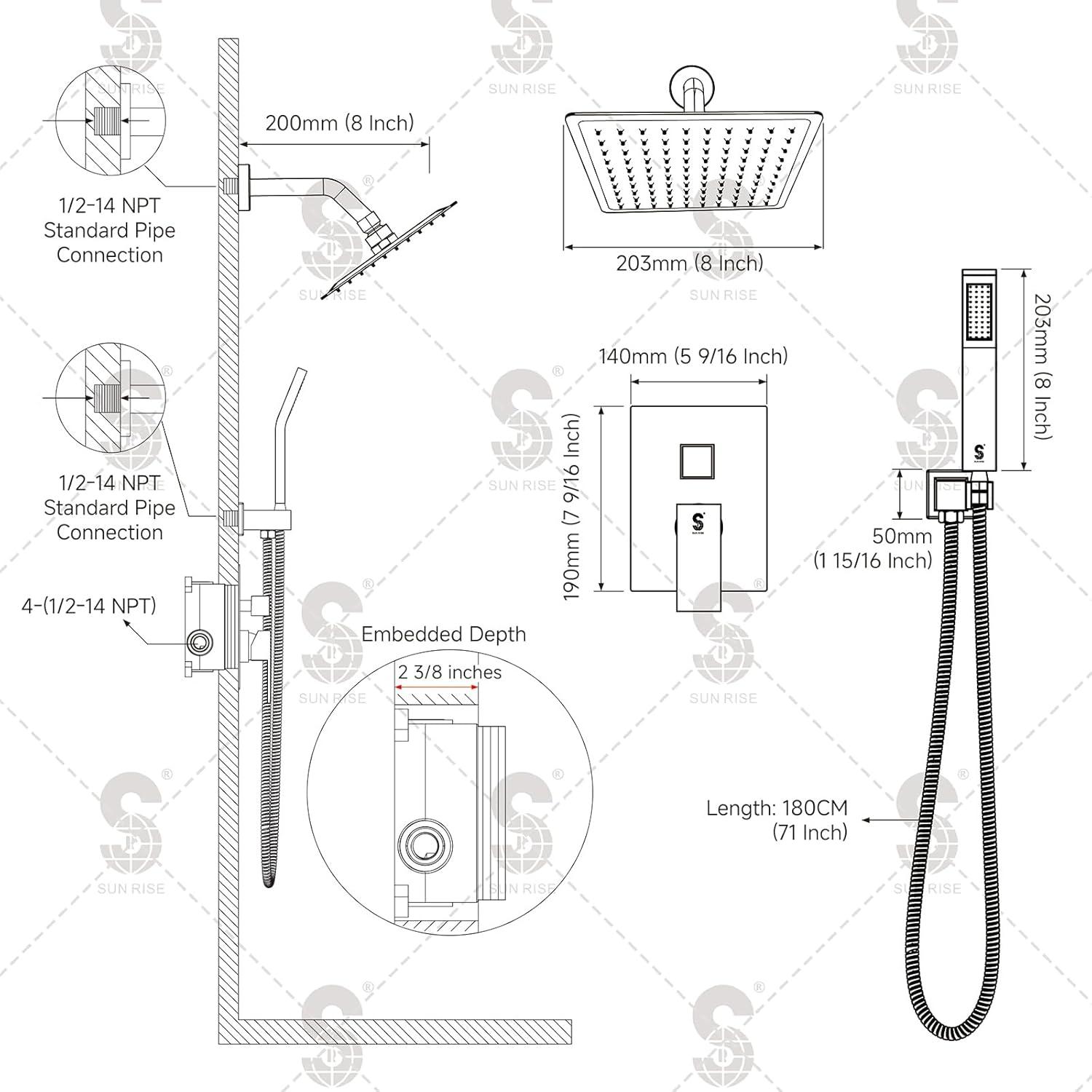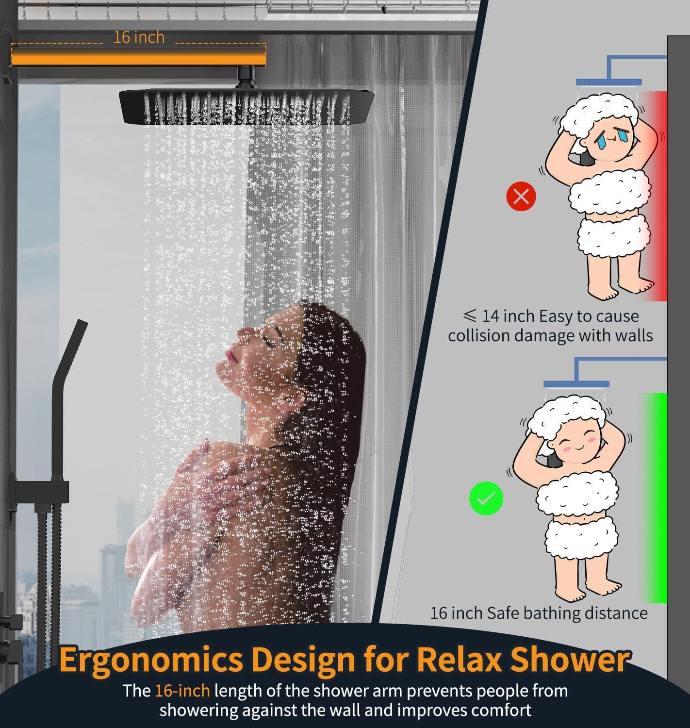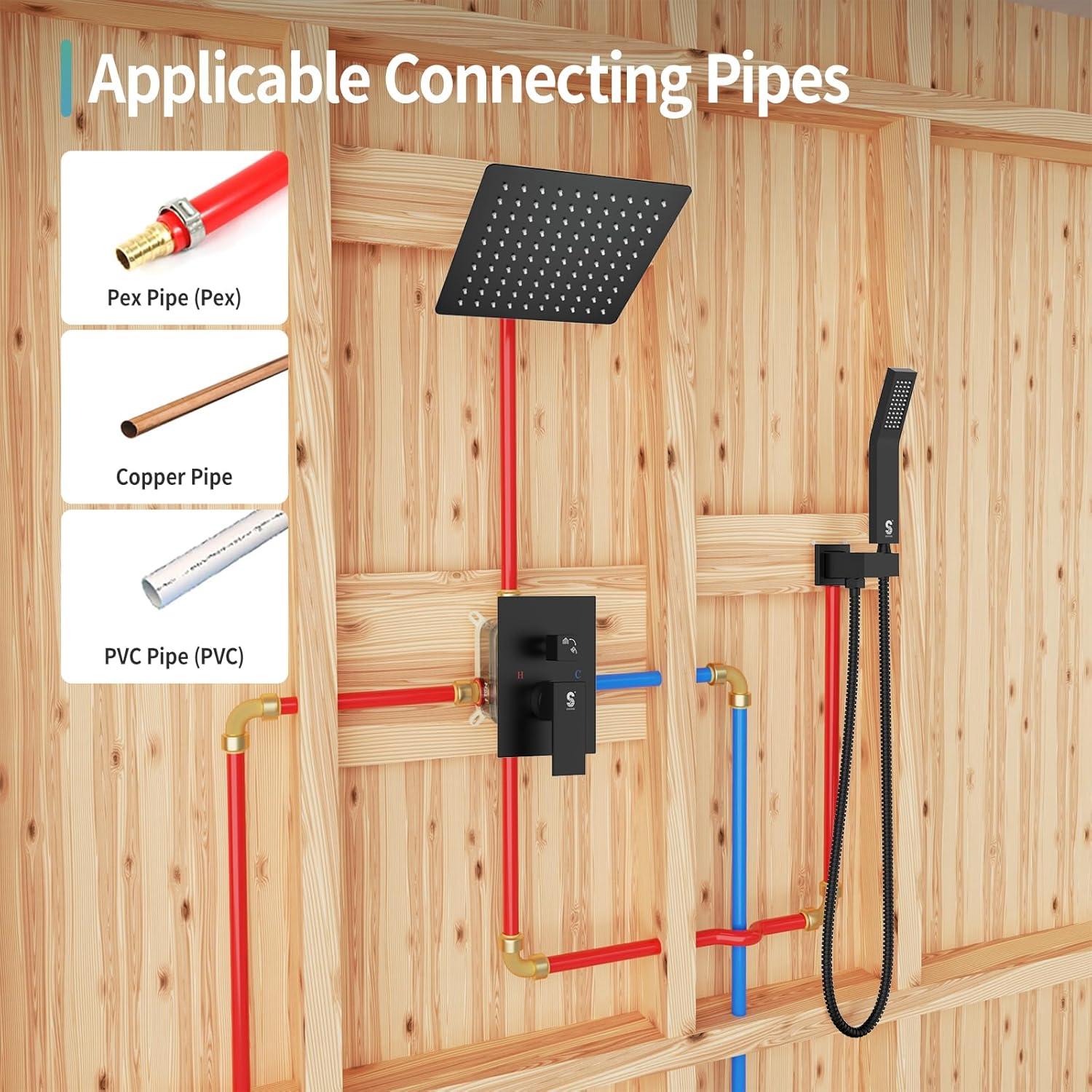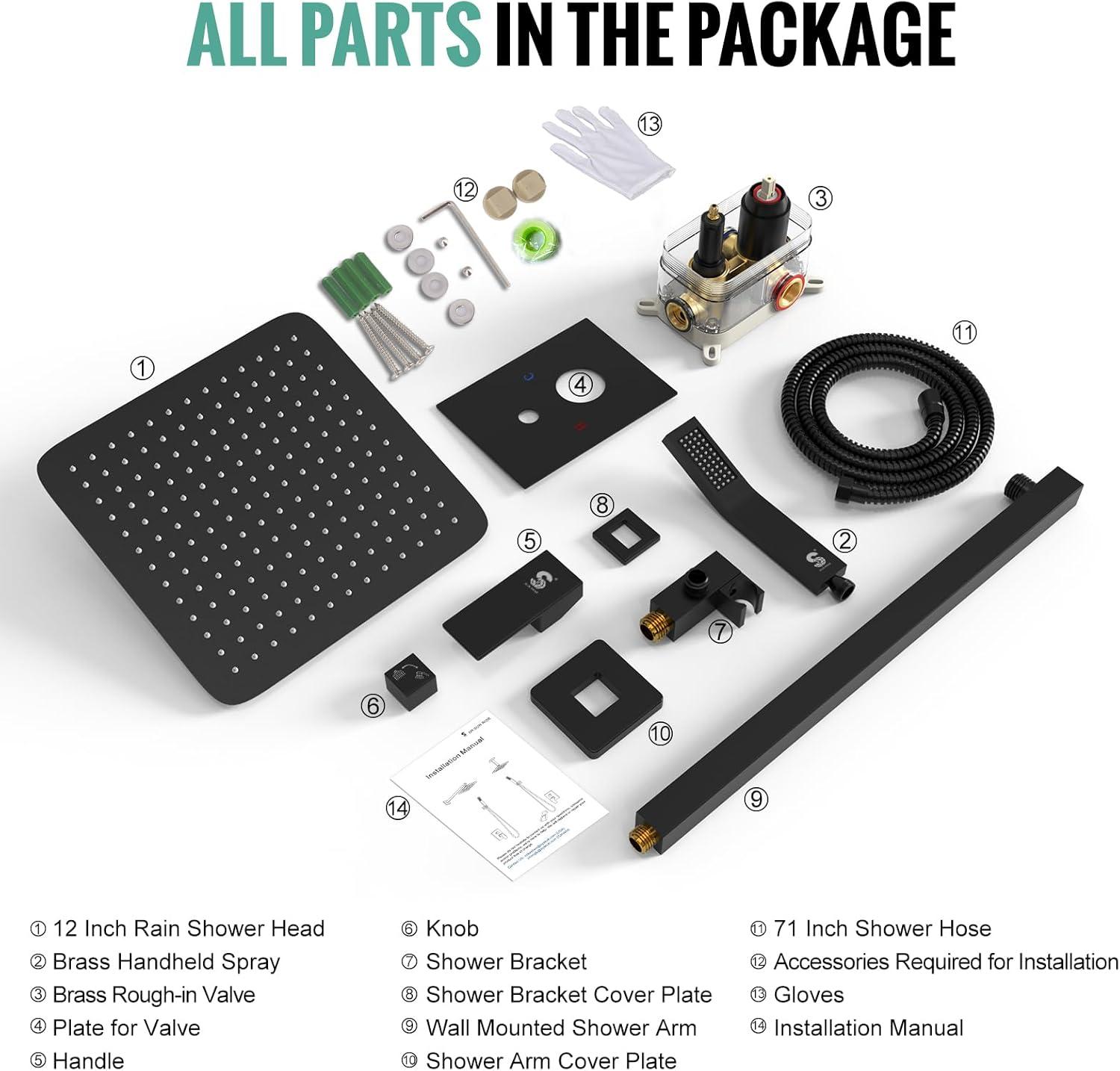 Complete Shower System Included: This shower faucet set includes everything you need for a luxurious upgrade: a 10-inch rain shower head, a handheld shower head, a 71-inch shower hose, a 16-inch shower arm, a handheld bracket, a mixing valve, a panel, a handle, a mode knob, shower arm and bracket covers, and all necessary installation accessories.