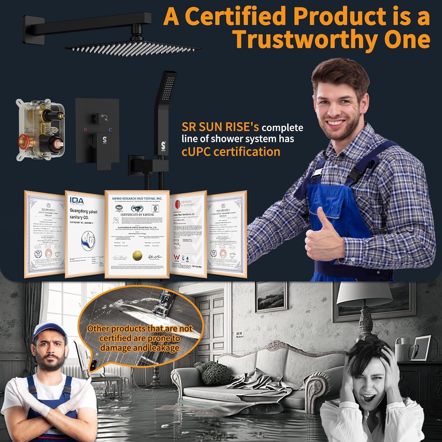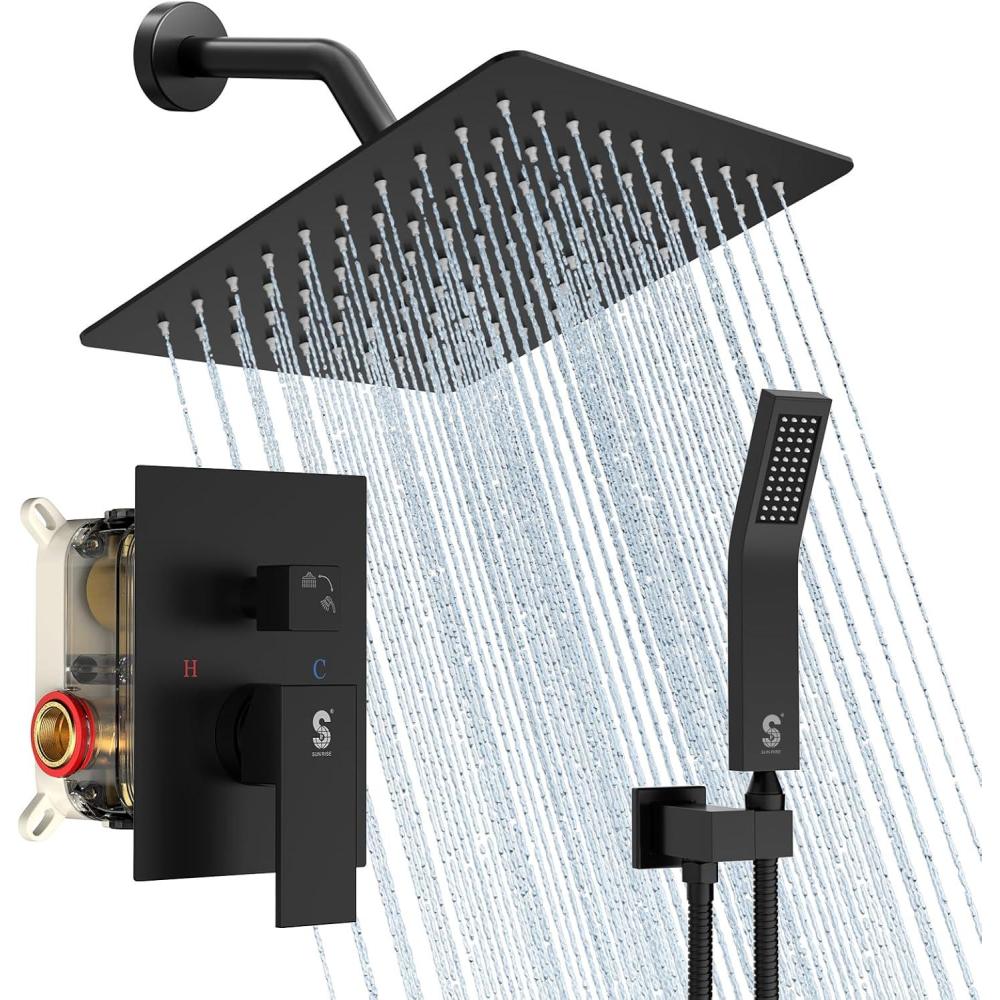 Be the first to review “SR SUN RISE Shower Faucet Set Bathroom Square Rain Shower Head with Handheld Spray Wall Mounted Rainfall Shower Fixtures Brushed Nickel Shower Faucet Trim Repair Kits (Contain Shower Valve)10 Inches(Matte Black)”