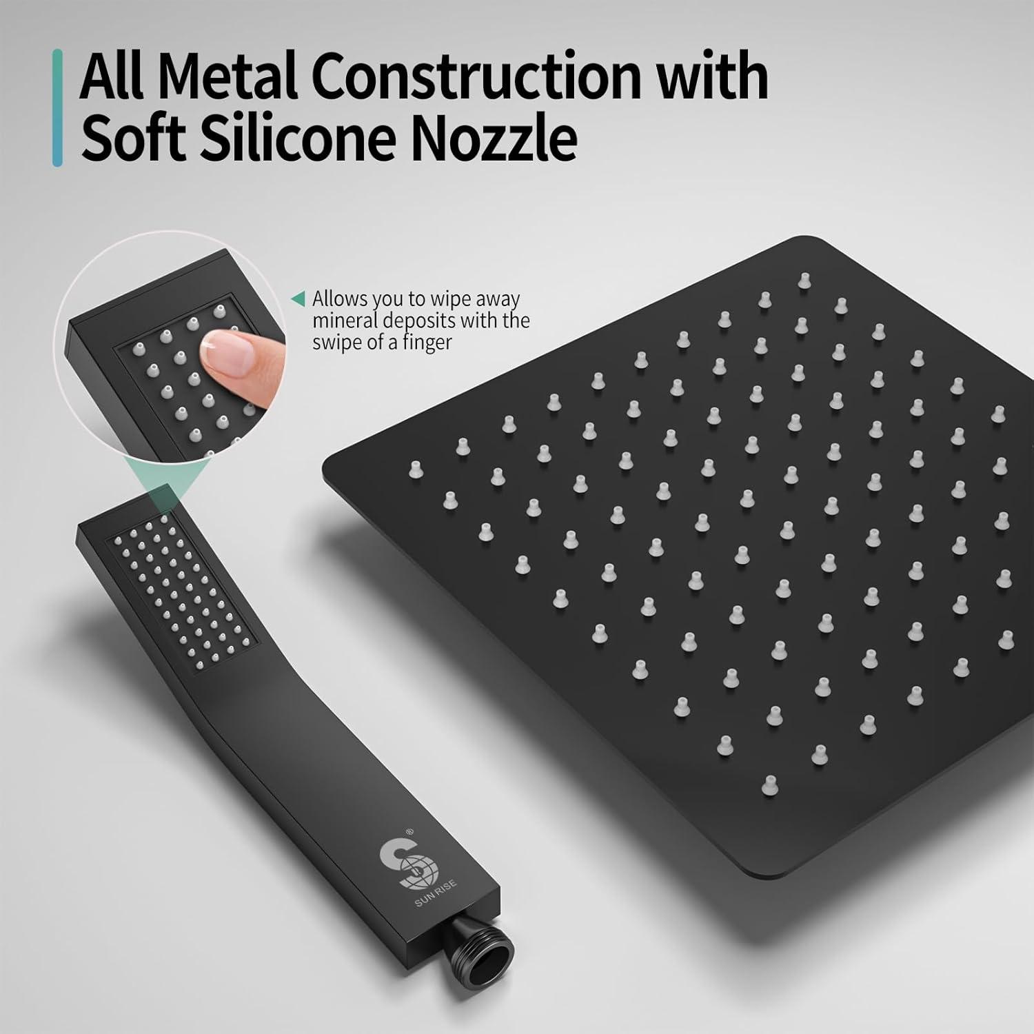 imageSR SUN RISE Shower Faucet Set Bathroom Square Rain Shower Head with Handheld Spray Wall Mounted Rainfall Shower Fixtures Brushed Nickel Shower Faucet Trim Repair Kits Contain Shower Valve10 InchesMatte Black