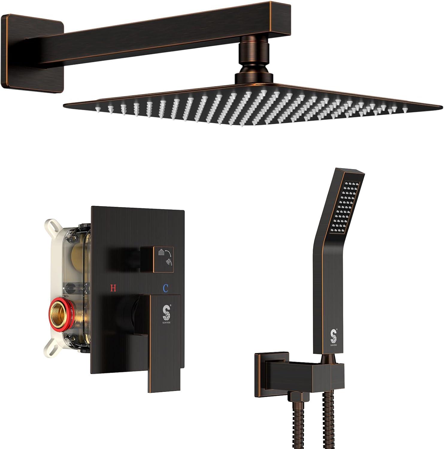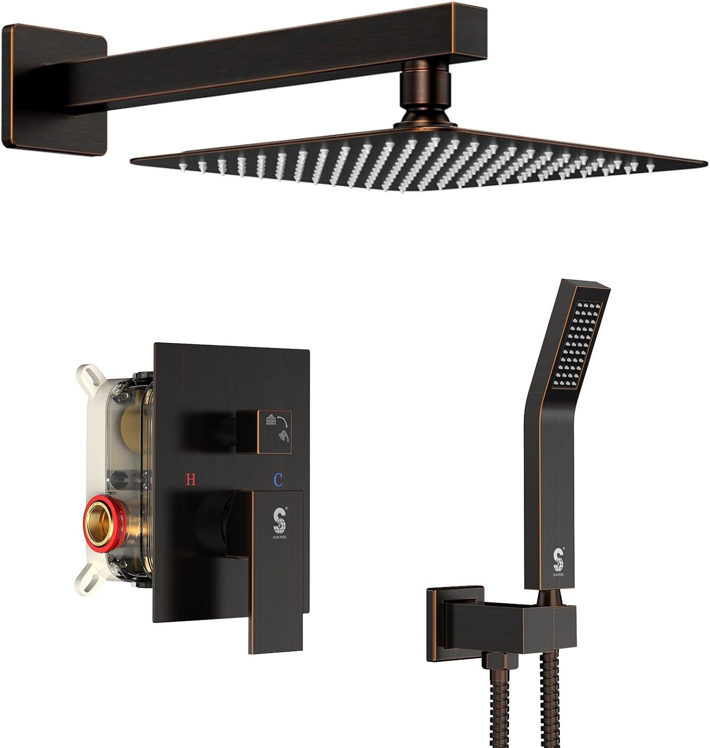 SR SUN RISE Shower Faucet Set Bathroom Square Rain Shower Head with Handheld Spray Wall Mounted Rainfall Shower Fixtures Brushed Nickel Shower Faucet Trim Repair Kits (Contain Shower Valve)10 Inches(Oil Rubbed Bronze)