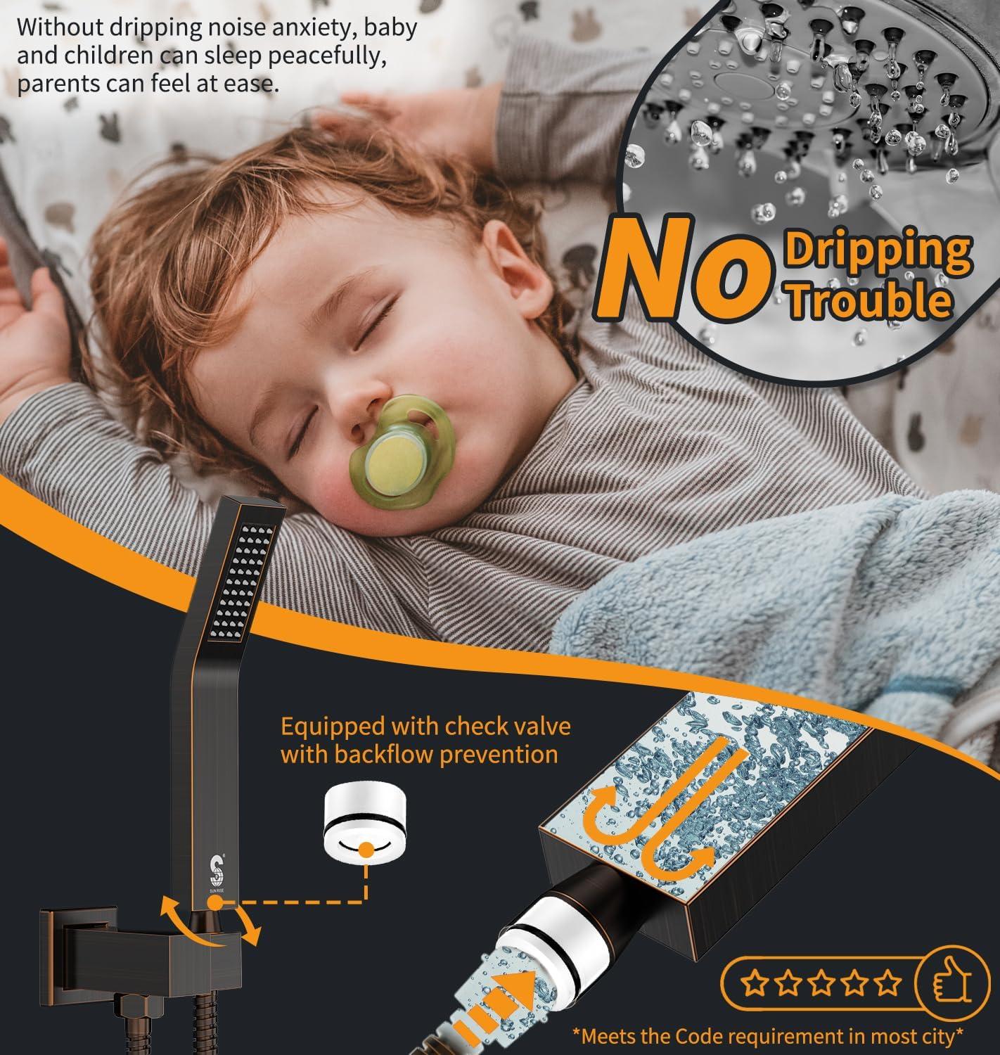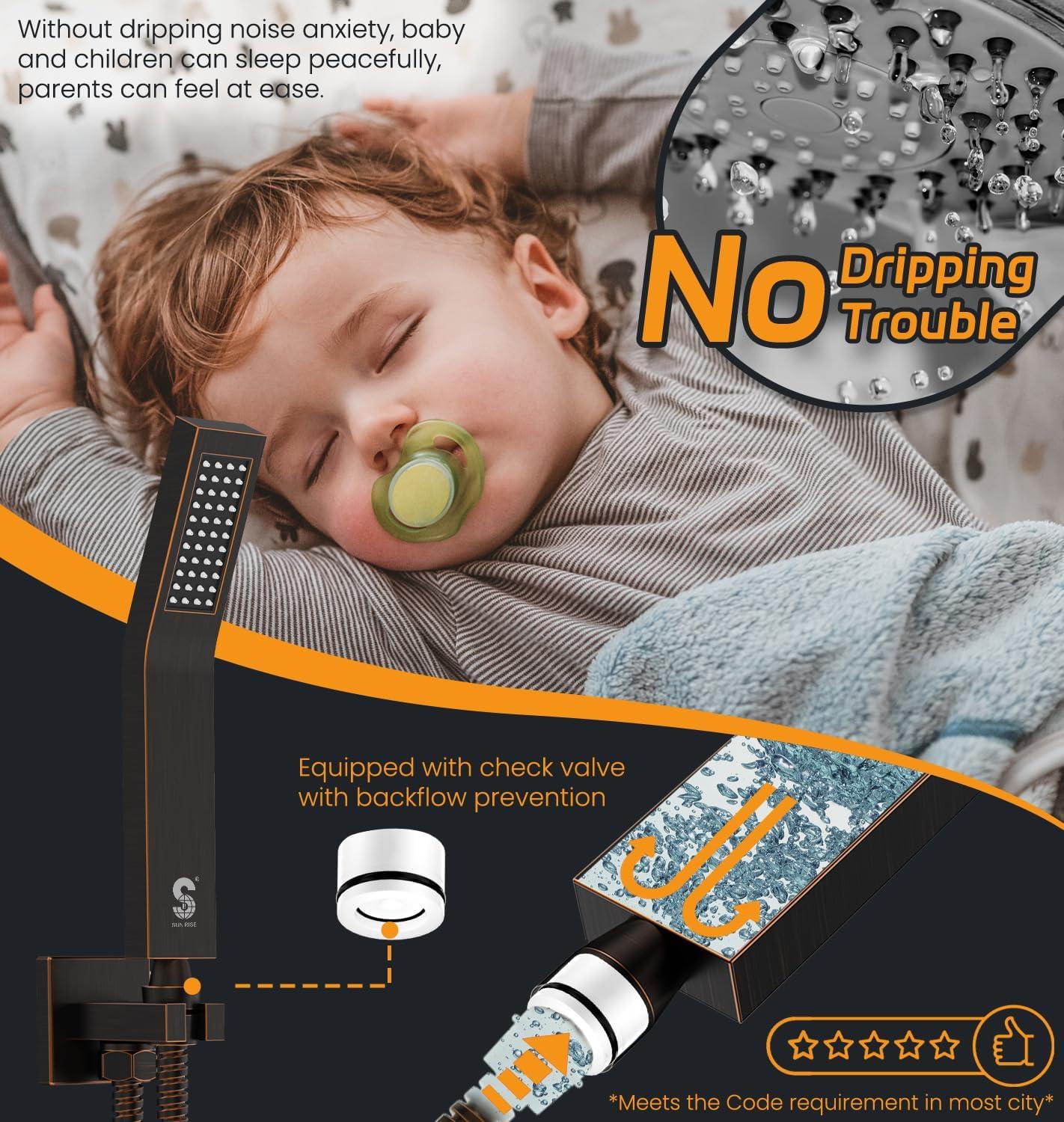 imageSR SUN RISE Shower Faucet Set Bathroom Square Rain Shower Head with Handheld Spray Wall Mounted Rainfall Shower Fixtures Brushed Nickel Shower Faucet Trim Repair Kits Contain Shower Valve10 InchesOil Rubbed Bronze