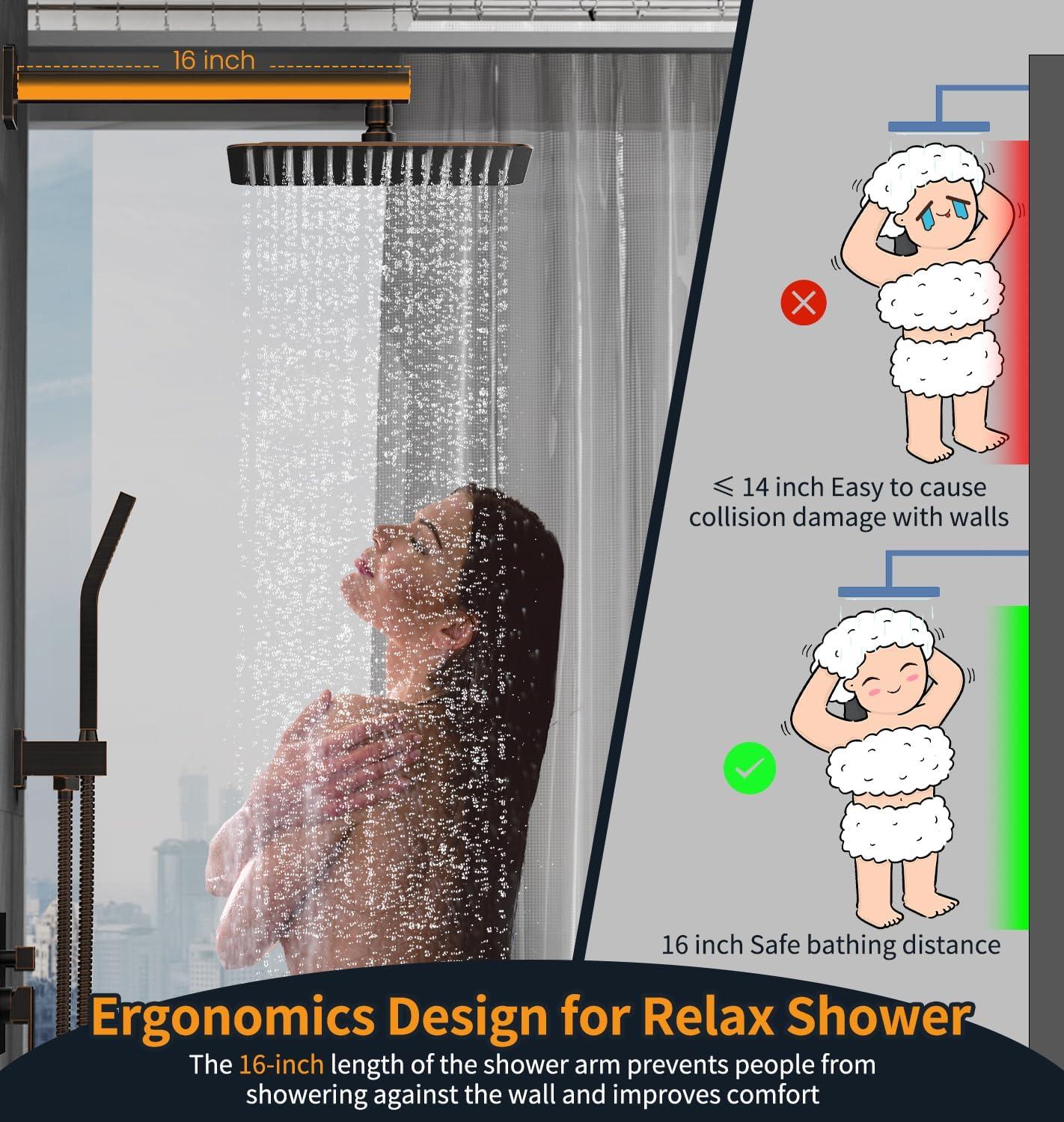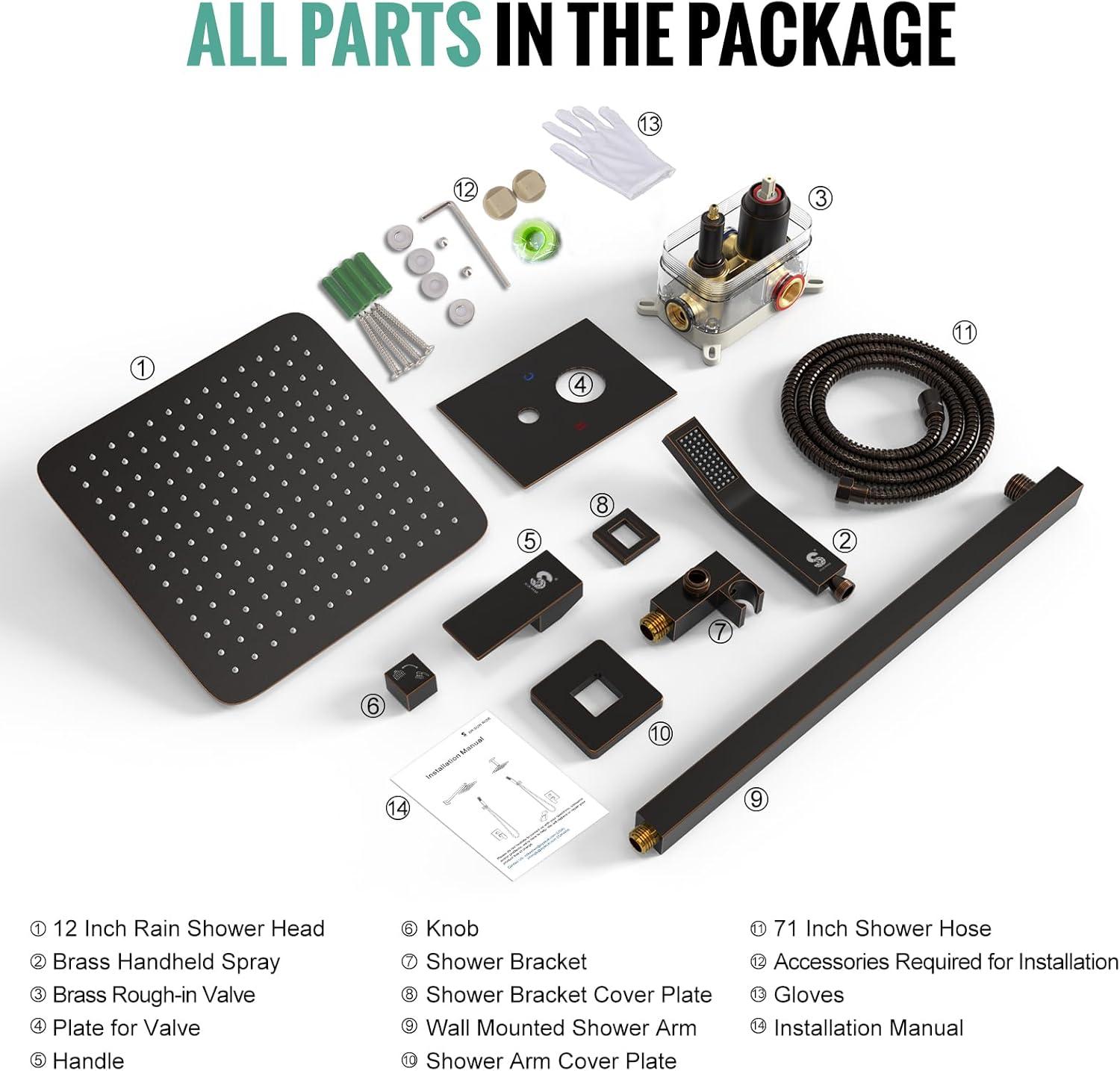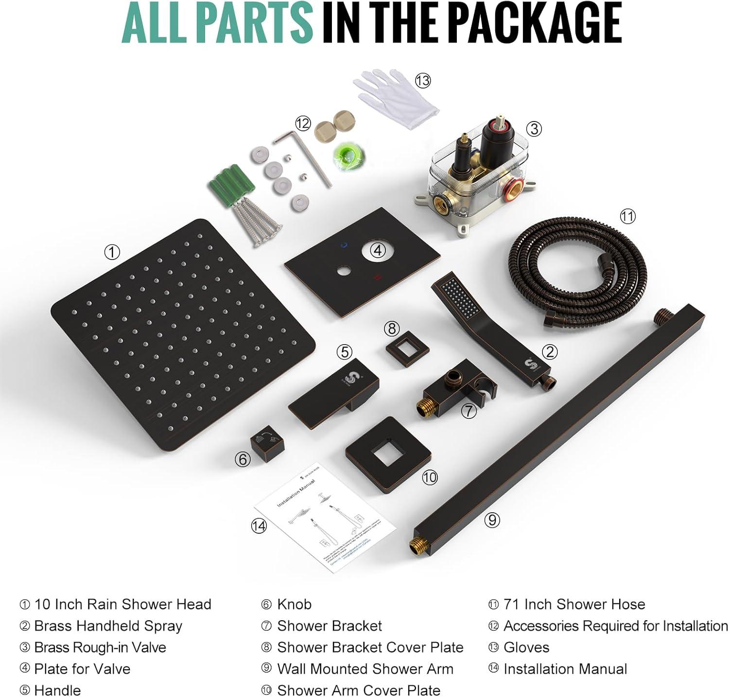 Complete Shower System Included: This shower faucet set includes everything you need for a luxurious upgrade: a 10-inch rain shower head, a handheld shower head, a 71-inch shower hose, a 16-inch shower arm, a handheld bracket, a mixing valve, a panel, a handle, a mode knob, shower arm and bracket covers, and all necessary installation accessories.