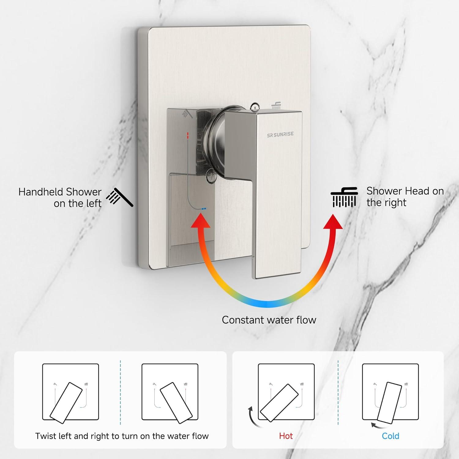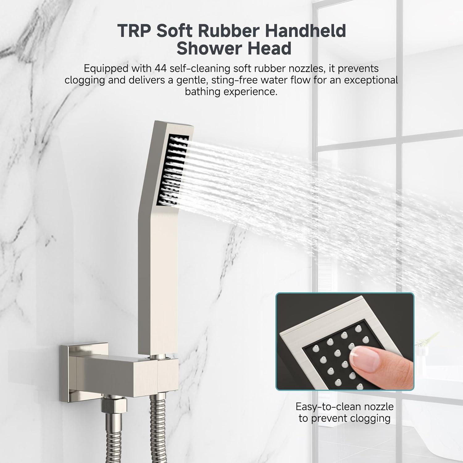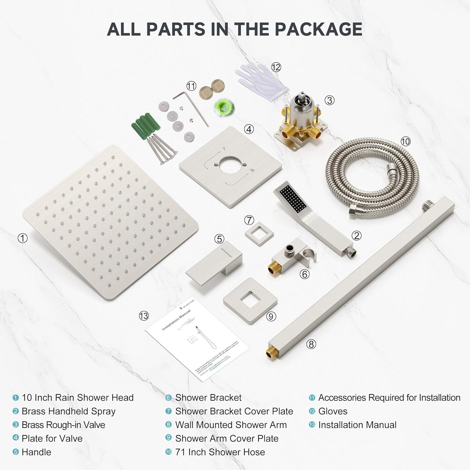 Premium Rain Shower Experience:Enjoy a luxurious rainfall experience with our large 10-inch square showerhead, designed to provide full-body coverage. Feel like you're standing in a tropical rainforest, indulging in ultimate relaxation.