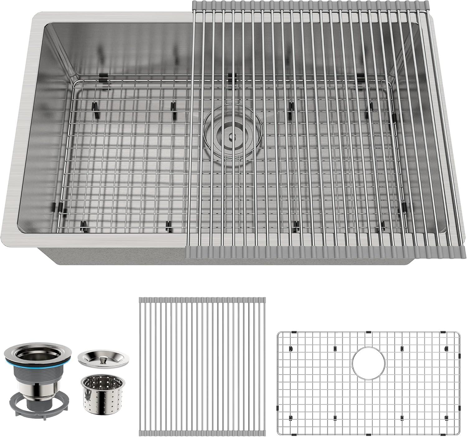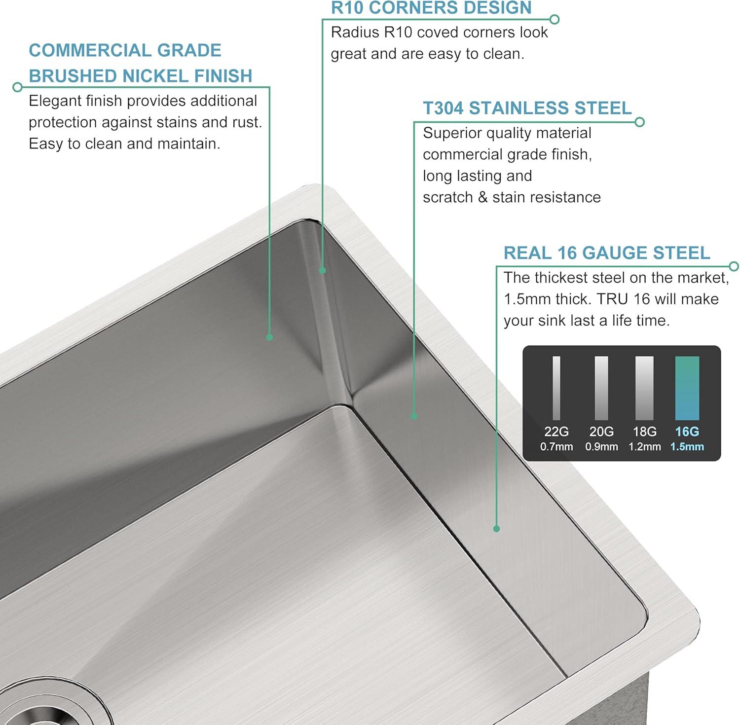 Indestructible Construction: The undermount single bowl sink is constructed of handcrafted 16 Gauge T304 stainless steel which uses best material for the superior durability and dent-resistance. Commercial Grade satin finish, corrosion and rust-resistant, easy to clean and long-lasting.