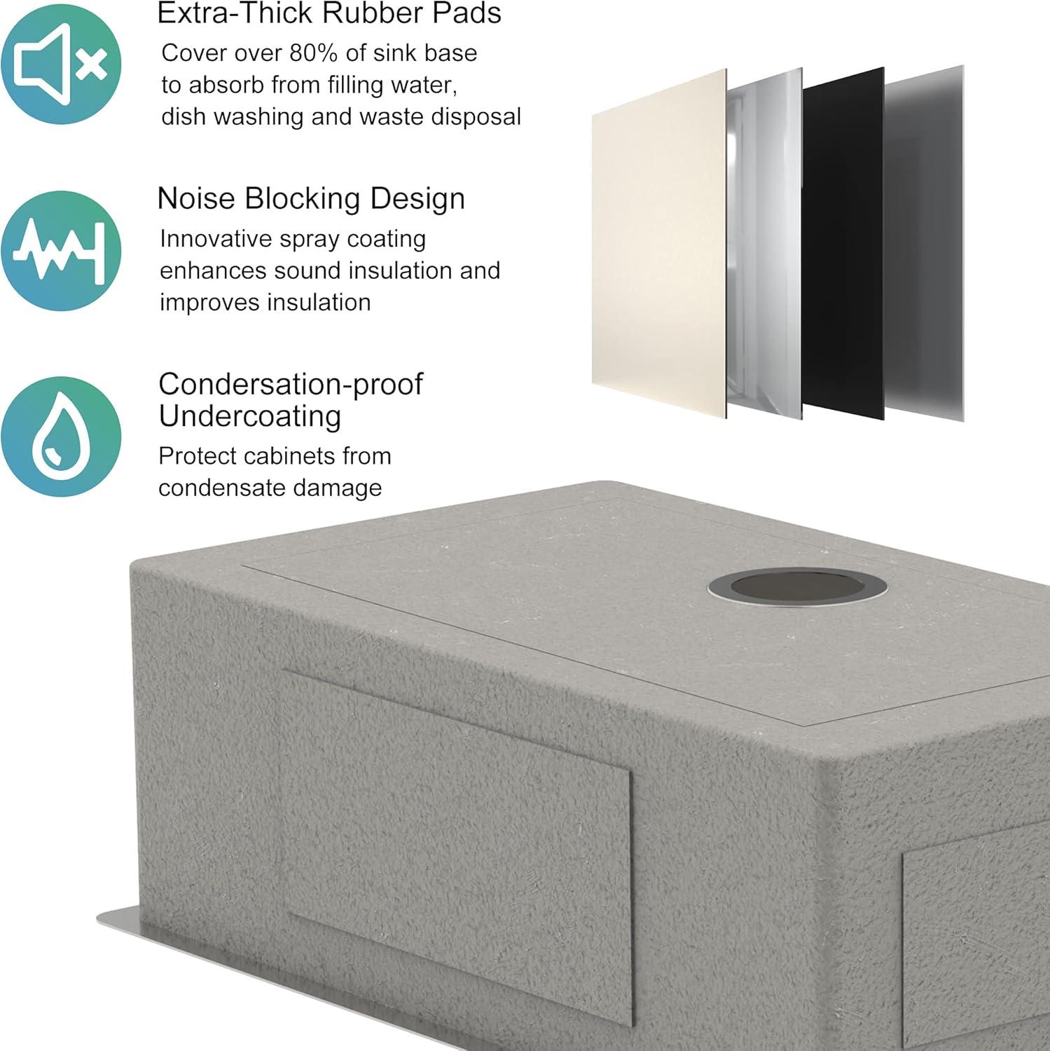 Sound Dampening: Create a quieter kitchen environment, soundproofing pads have been added to the bottom of all our stainless steel sink models to reduce the sound of running water. As an added protective layer and anti-condensation spray undercoating to prevent moisture accumulation.