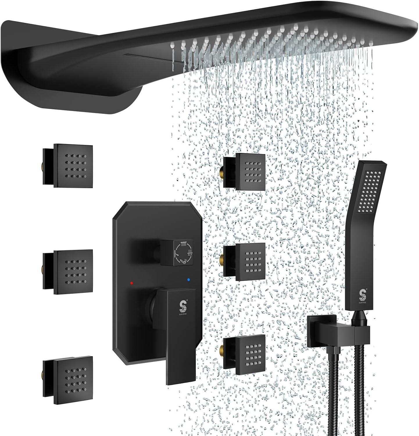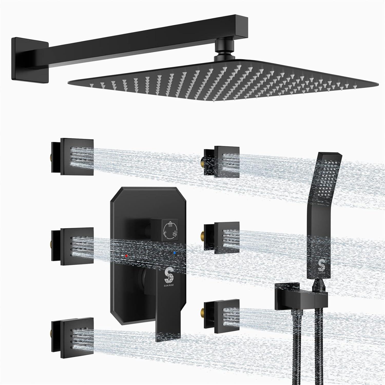 Be the first to review “Waist Massage Spray Shower System with 6 Body Jets, 12” Rain Shower System with Jets and Handheld Shower Faucet Set with Rough-in Valve, Wall Mounted Shower Fixture Set for Bathroom, Brushed Nickel(Matte Black)”