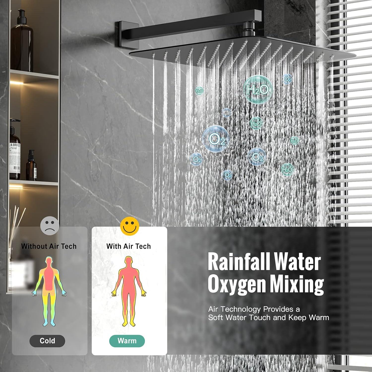 Ultimate High Pressure Shower: Thanks to the ultra-thin design and Air Energy Technology of the rain shower, even in a low water pressure environment, when the water flows out after being squeezed through the ultra-small space, it can also achieve a high water pressure rain shower experience