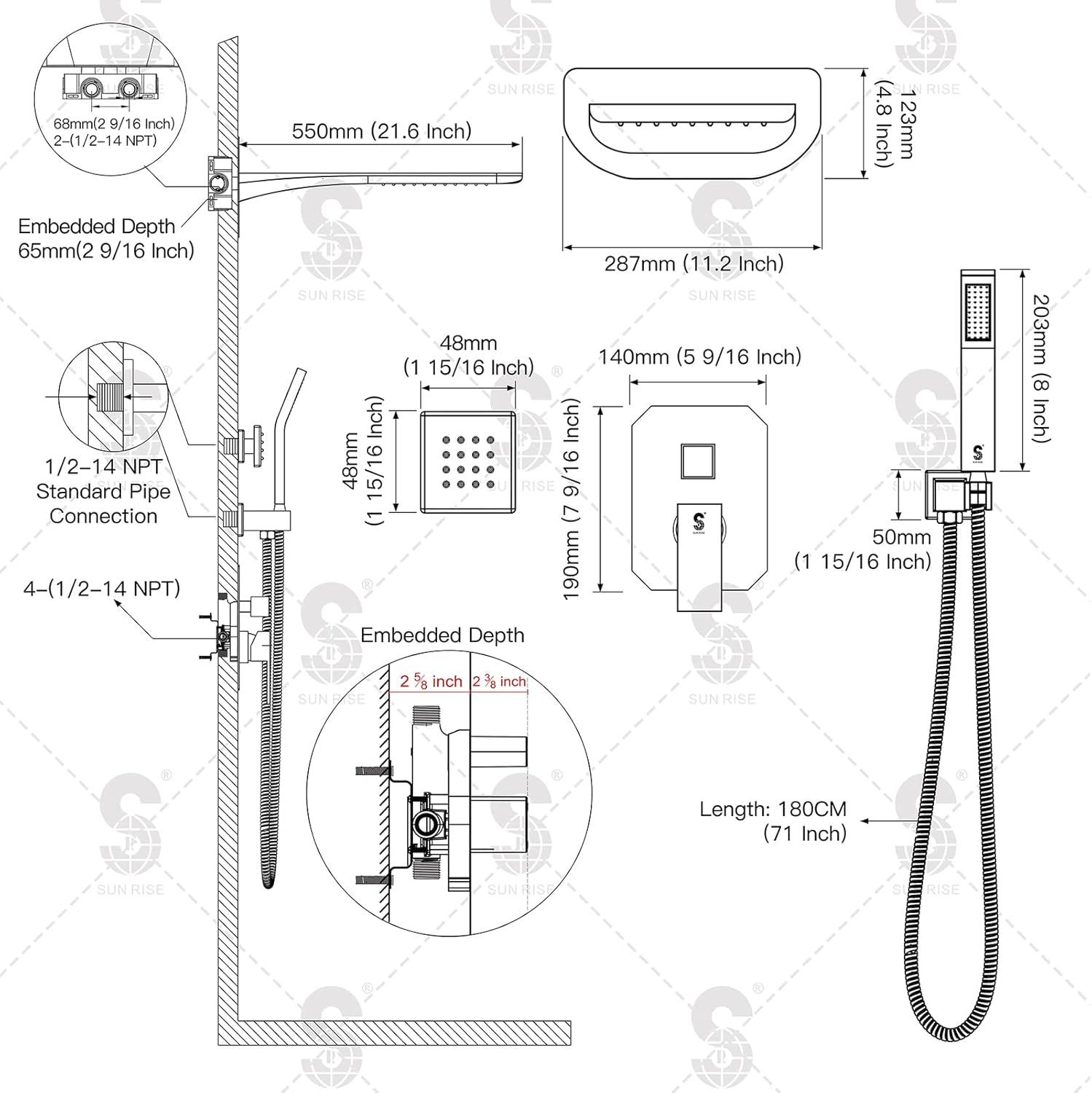 Install with Confidence: SR SUN RISE Shower System has cUPC Certification and compliance with the following standard(s): ASME A112.18.1-2018/CSA B125.1-18. Designed for use with standard 1/2″ U.S. plumbing connections. Approved by the California Energy Commission